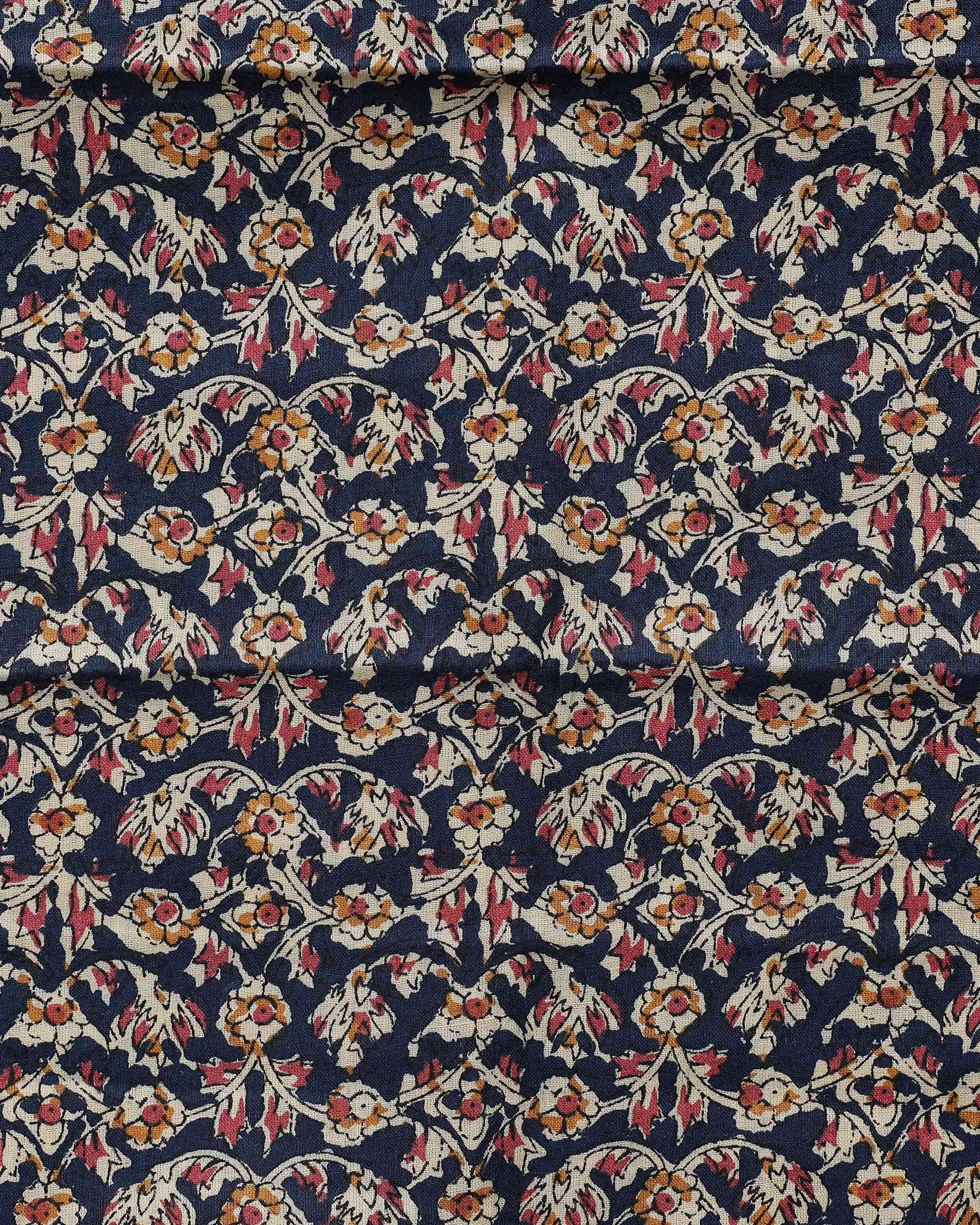 Handloom Khadi Cotton Saree with Contrast Printed Blouse and Tassel Accents - Dark Blue