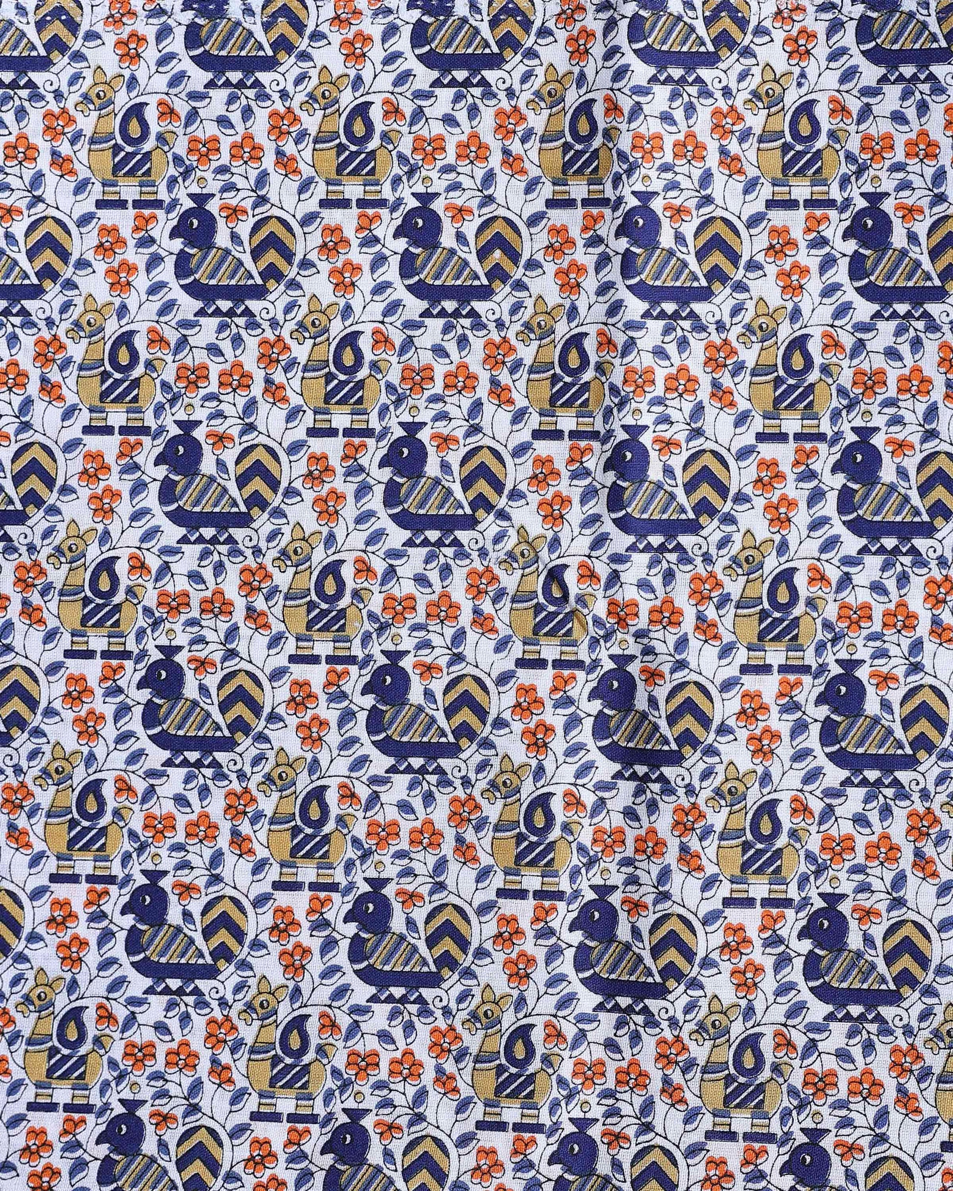 - The saree a subtle texture and is paired with a beautiful printed blouse piece, combining traditional craftsmanship with modern style.