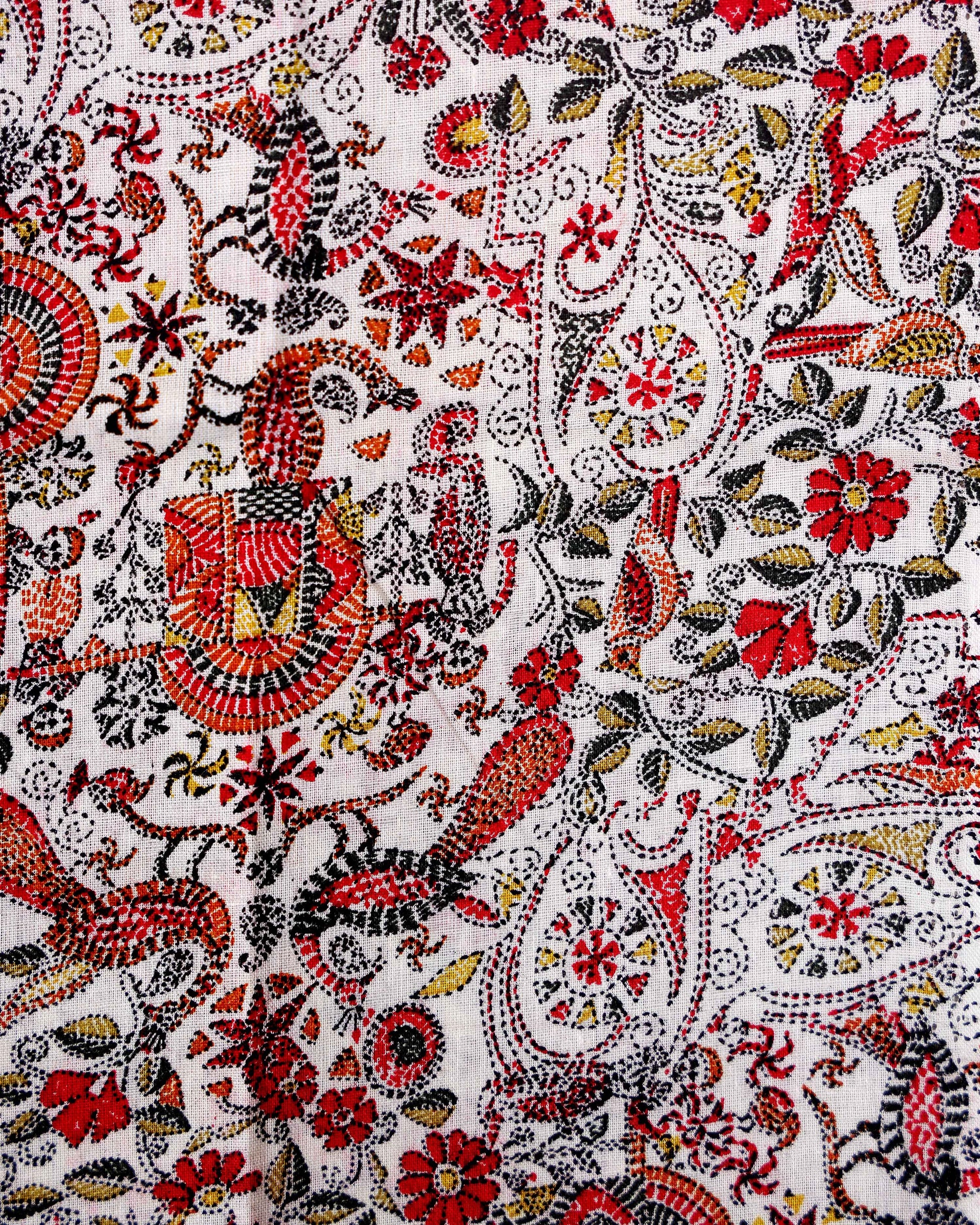 - The saree a subtle texture and is paired with a beautiful printed blouse piece, combining traditional craftsmanship with modern style.