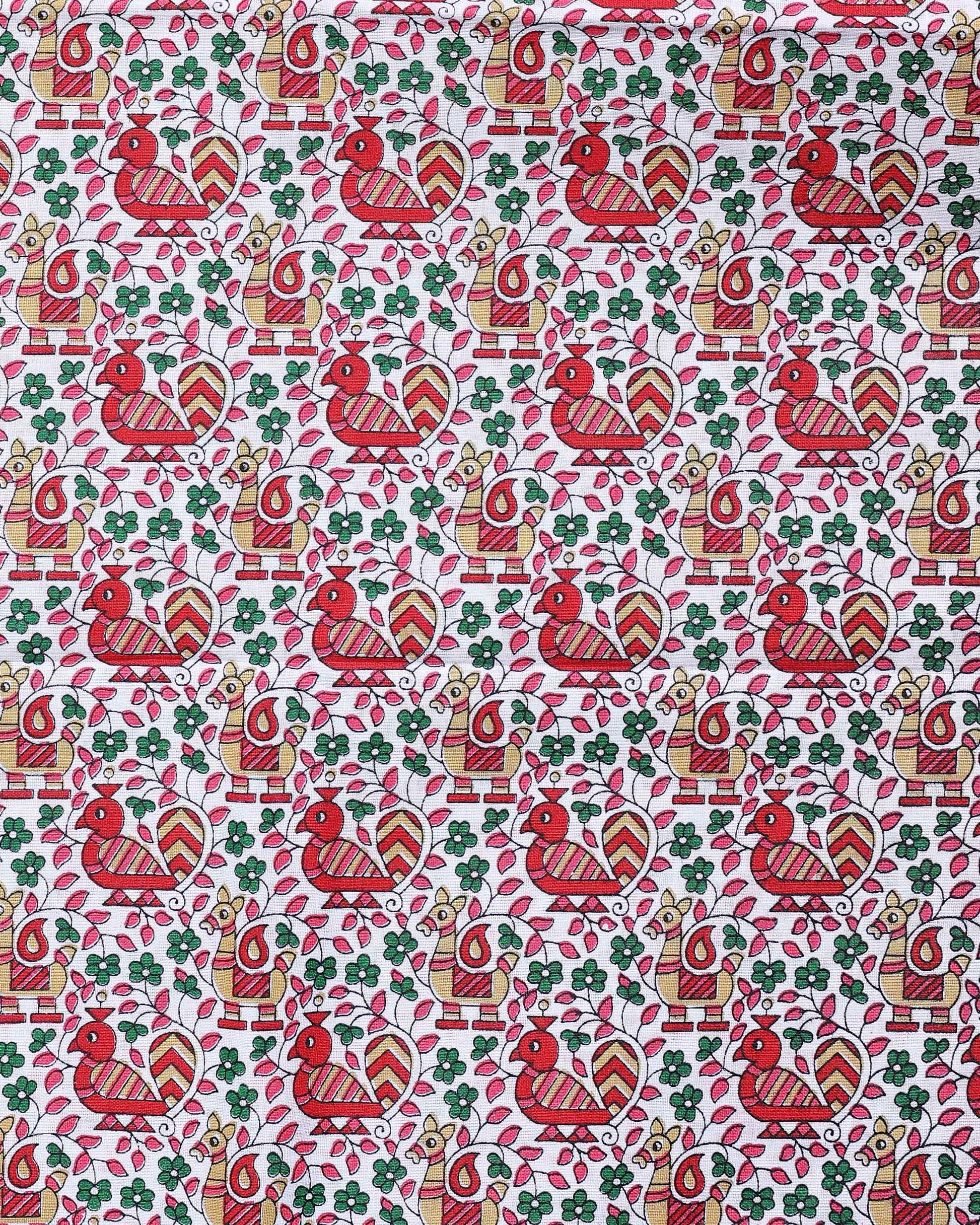Handloom Khadi Cotton Saree with Contrast Printed Blouse and Tassel Accents -Red