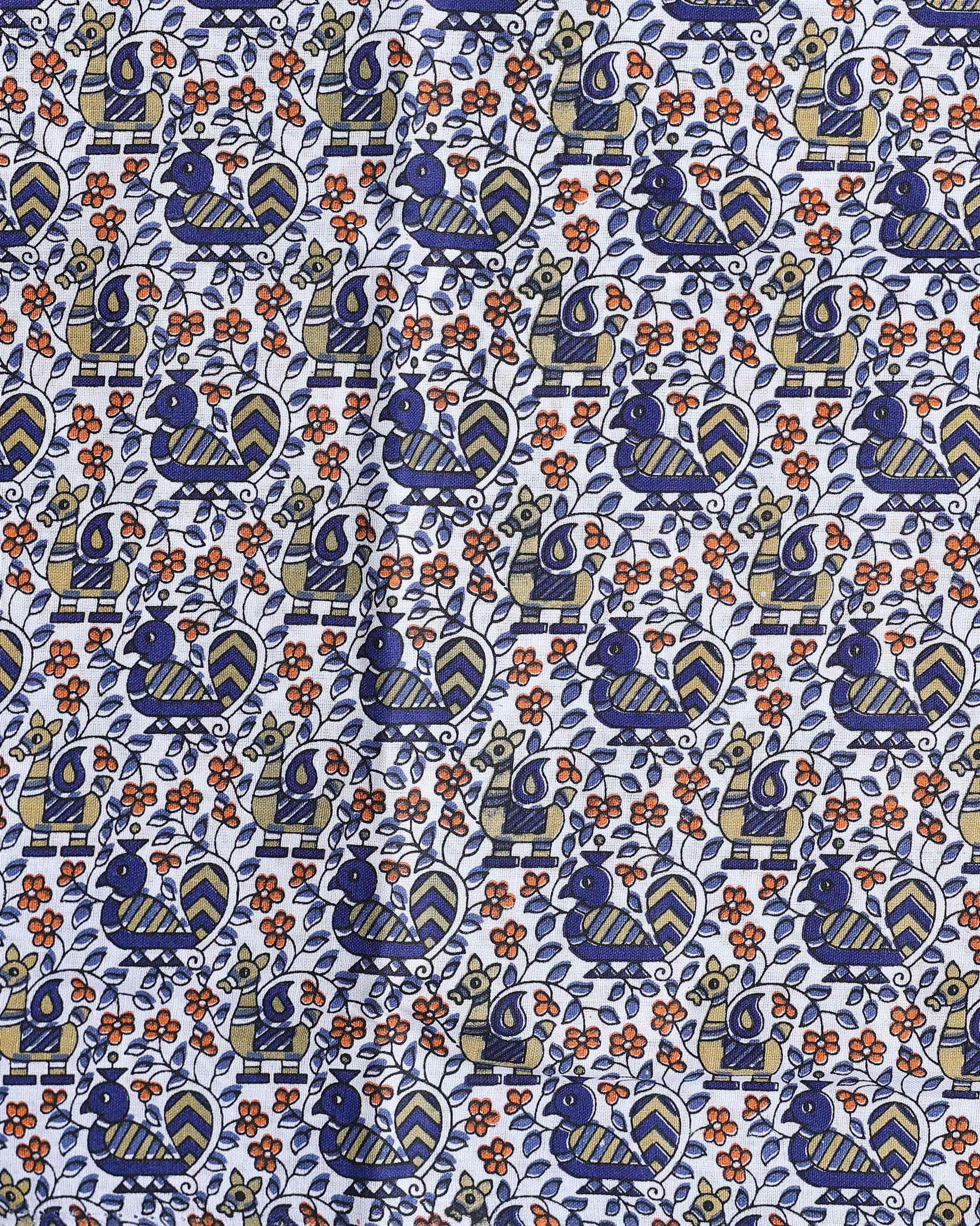 - The saree a subtle texture and is paired with a beautiful printed blouse piece, combining traditional craftsmanship with modern style.