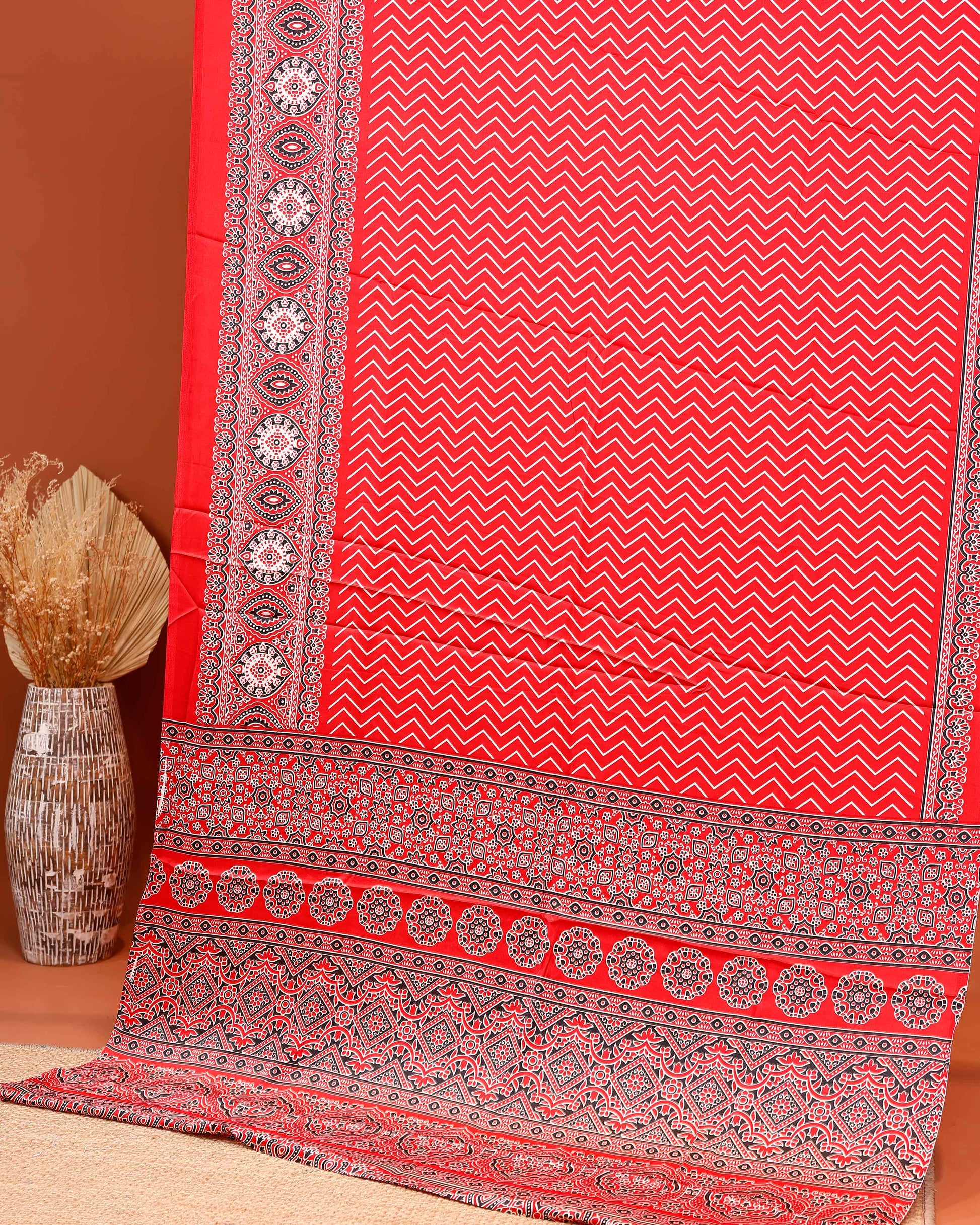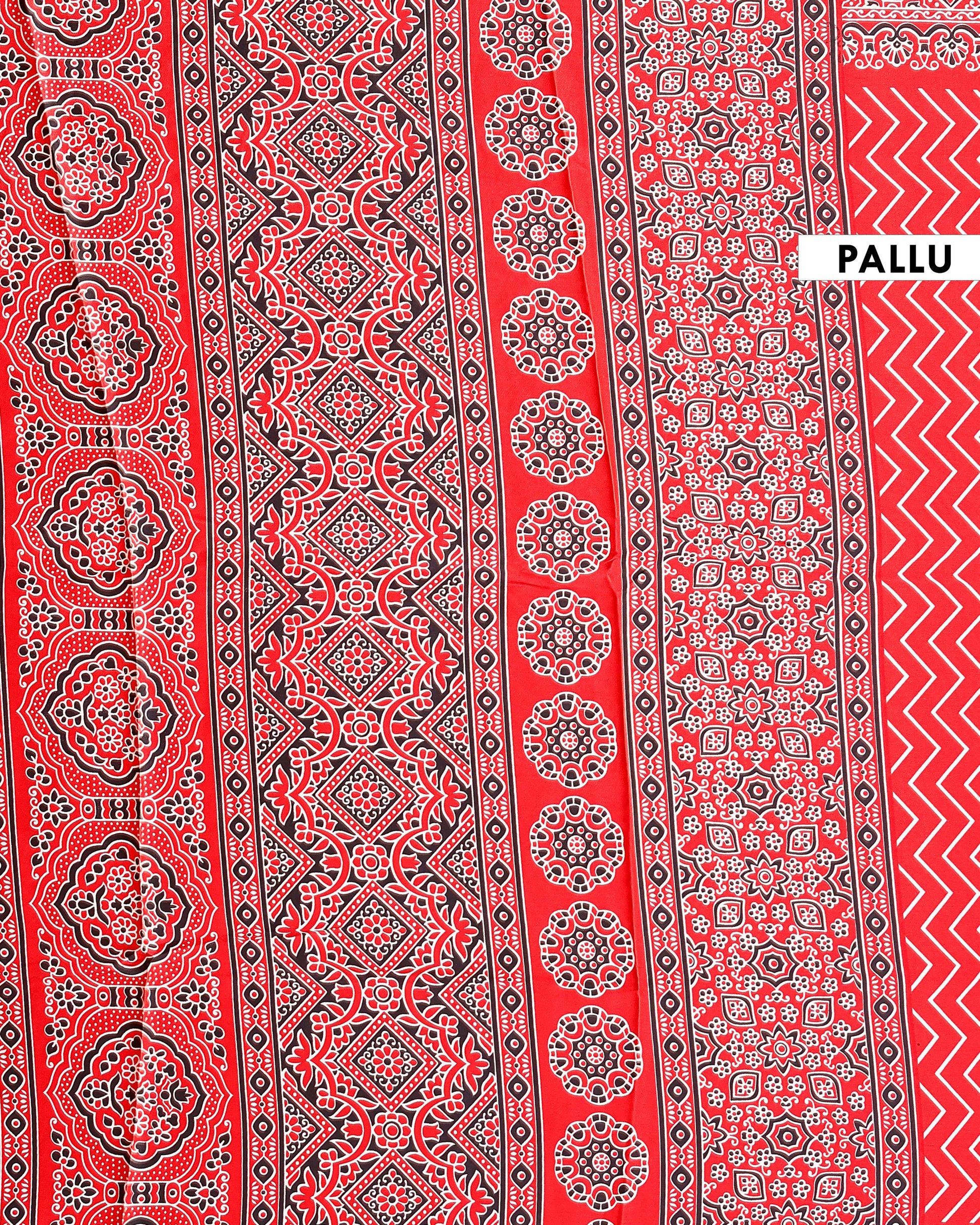 Stylish Modal Satin Saree with Zigzag Pattern and a Richly Detailed Traditional Border - Red