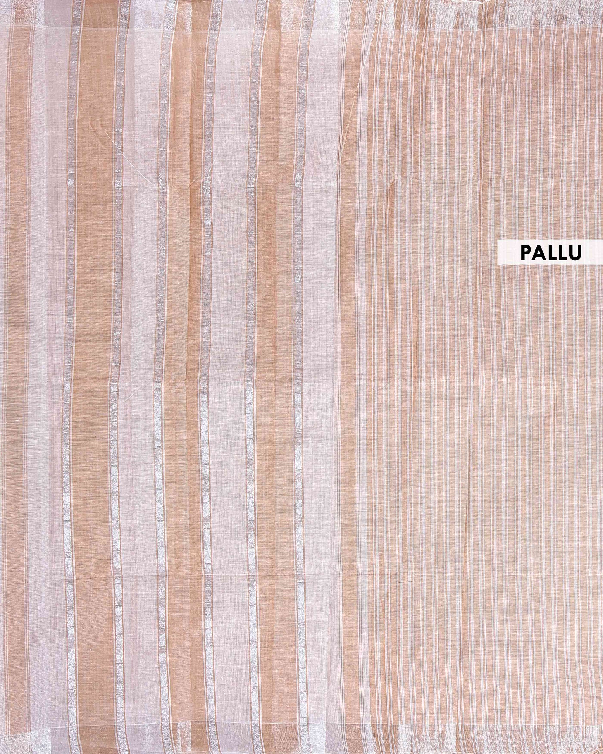Handloom Kovai Cotton Saree with Subtle Striped Pattern - Brown