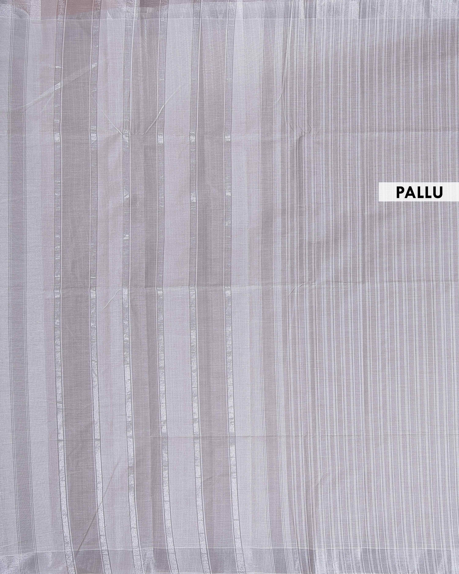 Handloom Kovai Cotton Saree with Subtle Striped Pattern - Light Grey