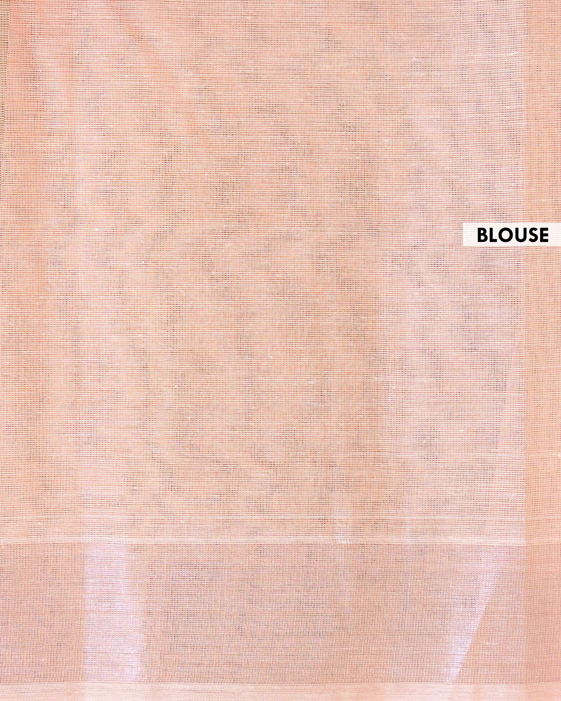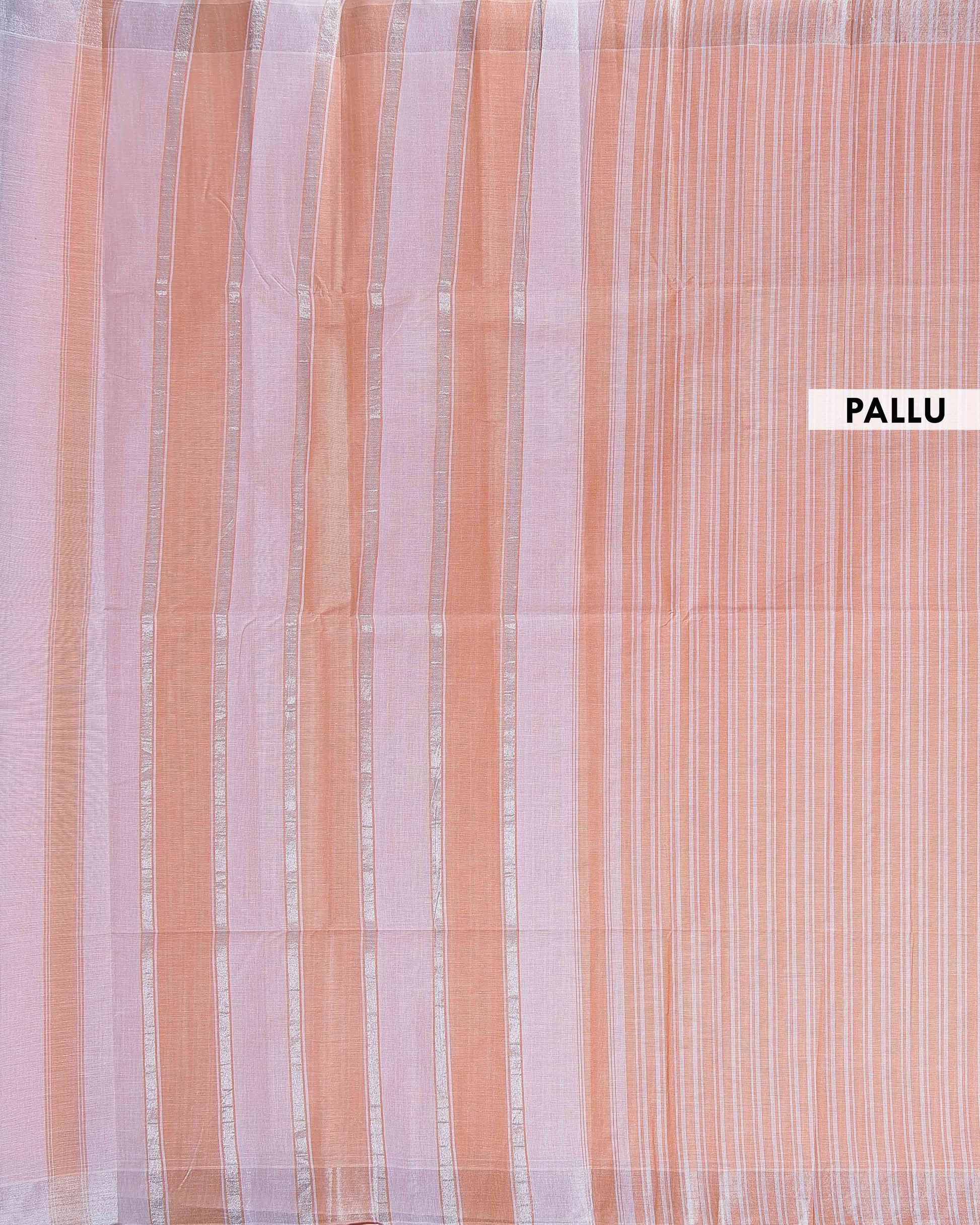 Handloom Kovai Cotton Saree with Subtle Striped Pattern - Peach
