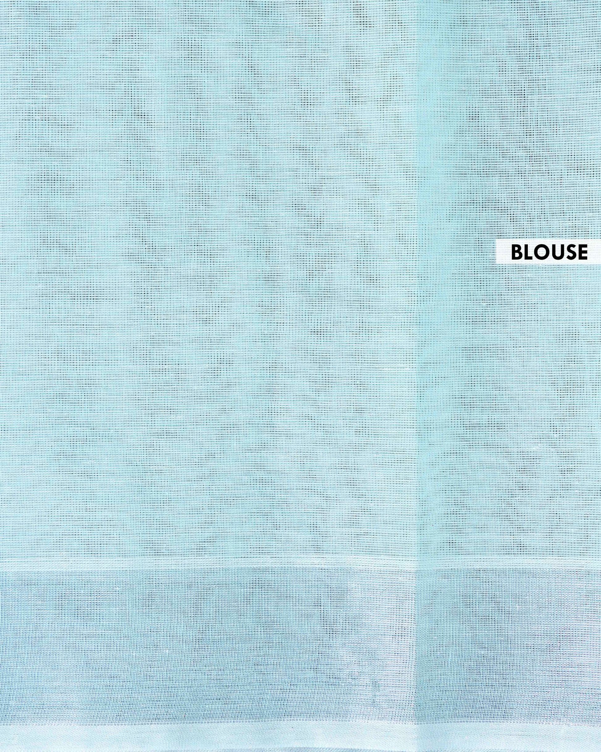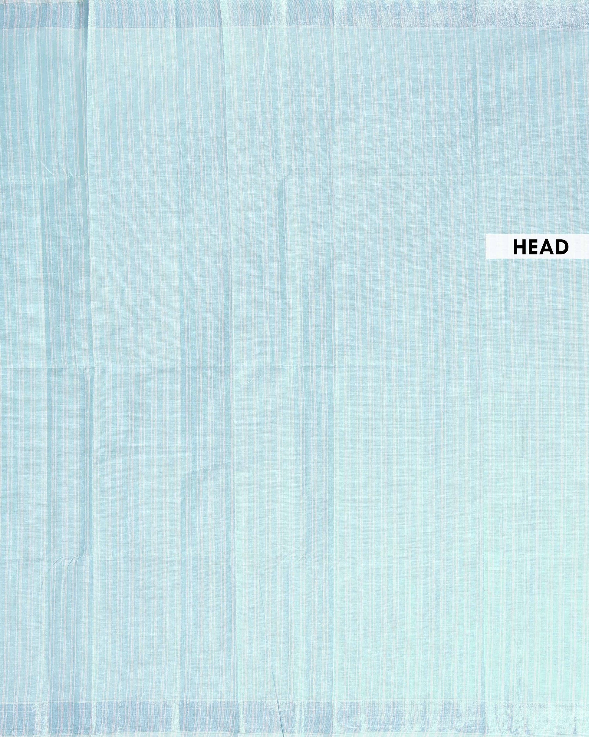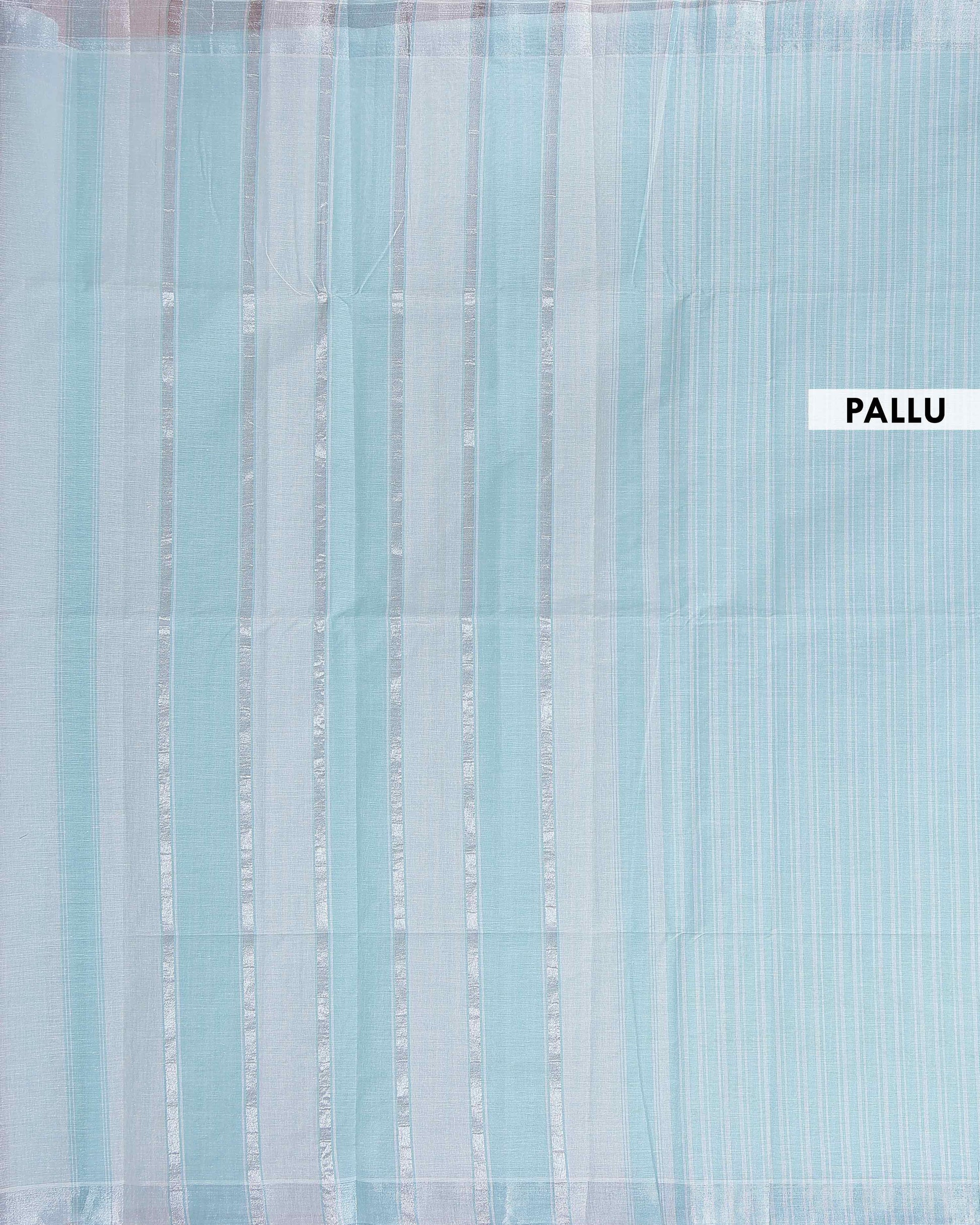 Handloom Kovai Cotton Saree with Subtle Striped Pattern - Sky Blue