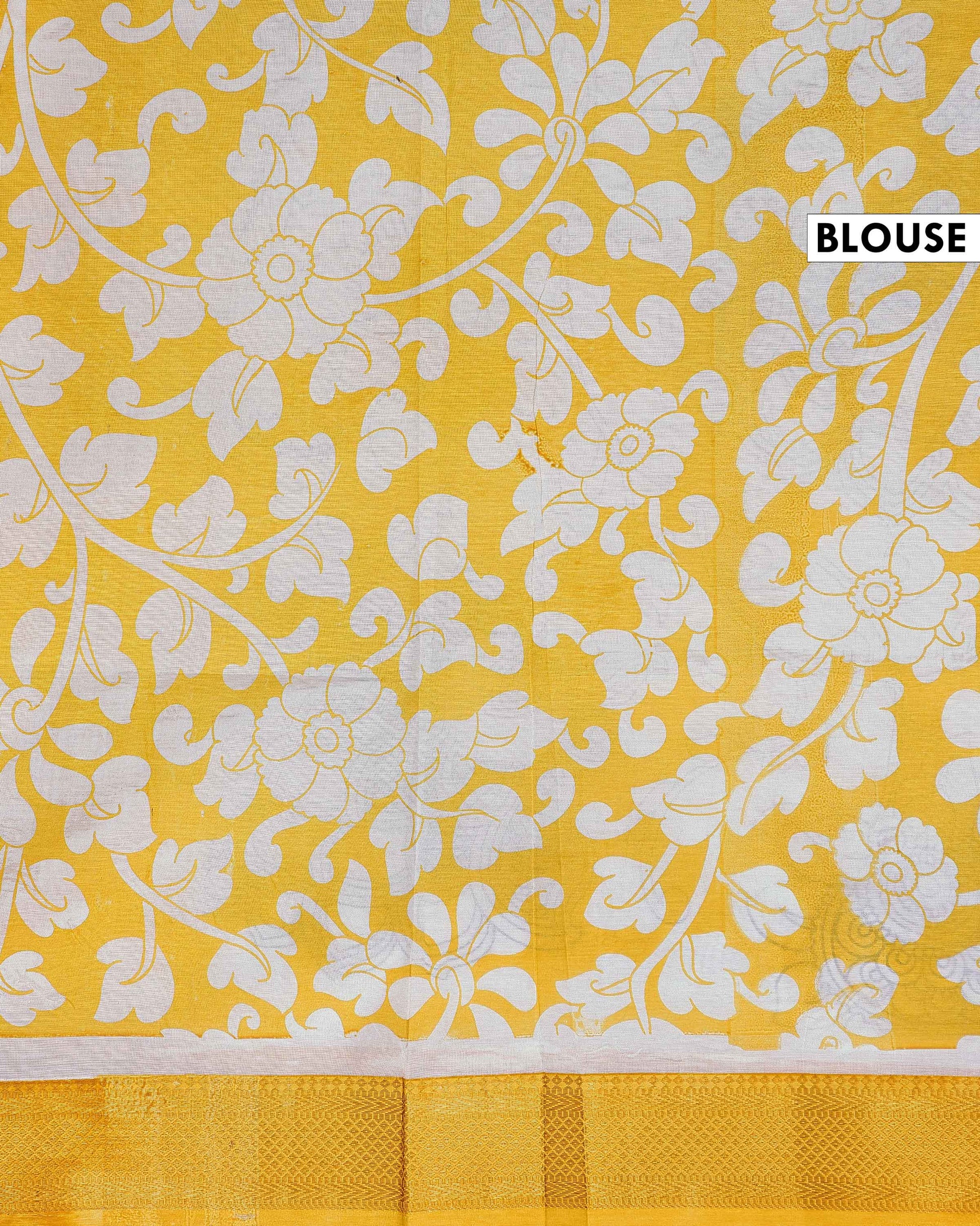 - The handloom fabric and contrasting Yellow border make this a perfect choice for a traditional yet modern look.