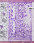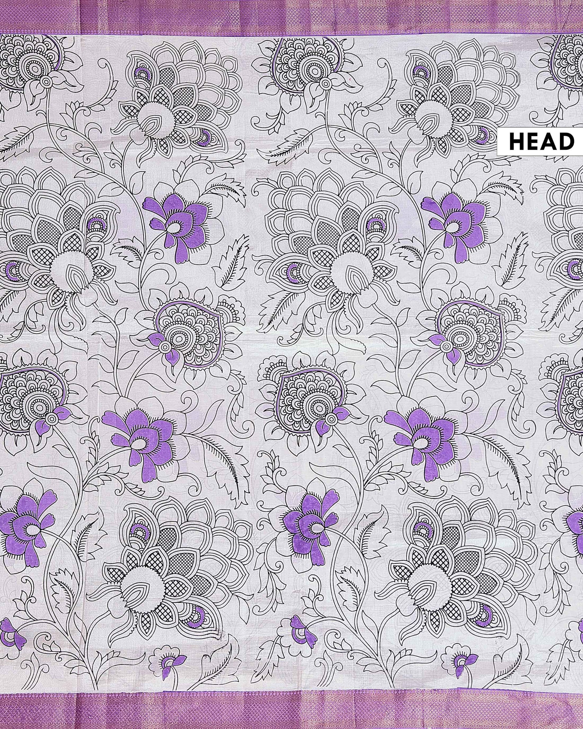 Handloom Mangalagiri Semi Chanderi Saree with Kalamkari Inspired Floral Motifs and a Contrast Zari Border - White