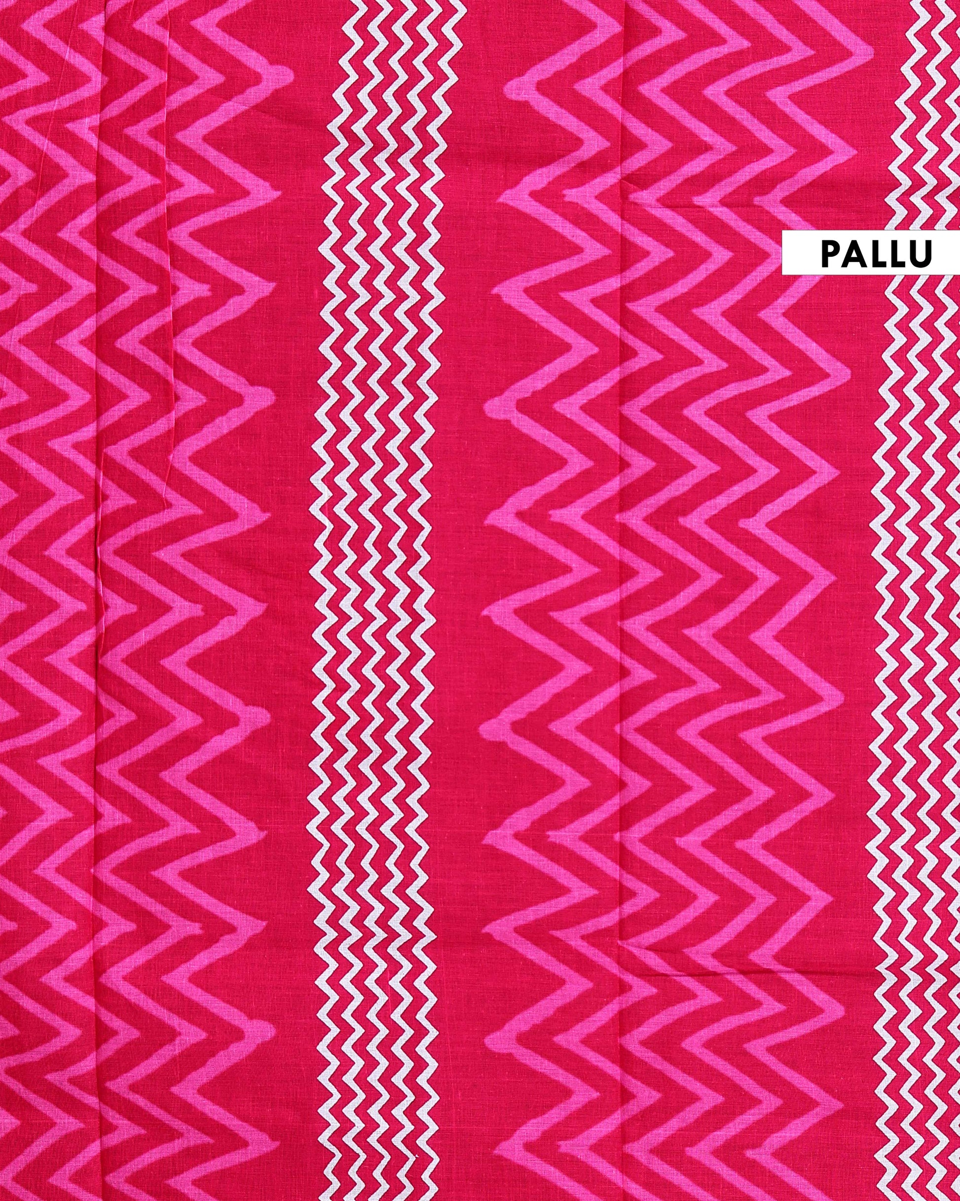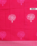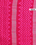 Handloom Mul Mul Semi Cotton Saree with Tree Motif and Zigzag Border - Pink