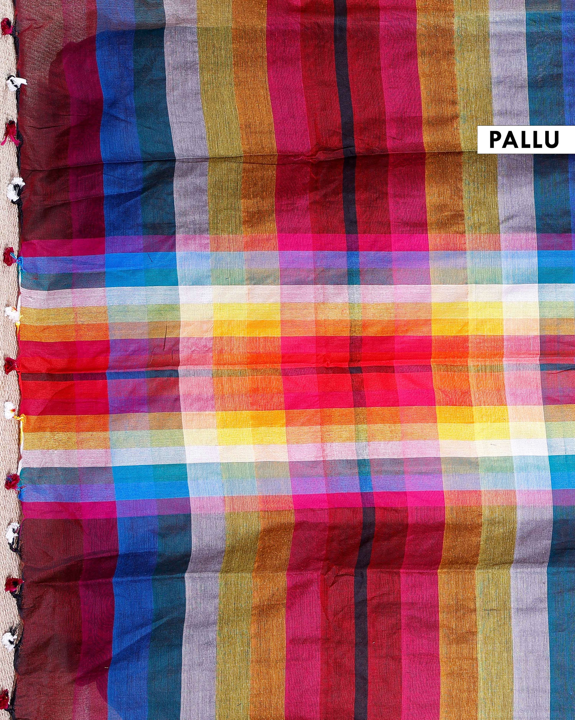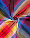 - Vibrant multi color checkered Mul Mul Cotton Saree with a soft airy drape for all day comfort.