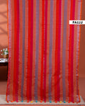 Handloom Mul Mul Cotton Saree with Vertical Stripe Pattern and Decorative Tassels - Multi