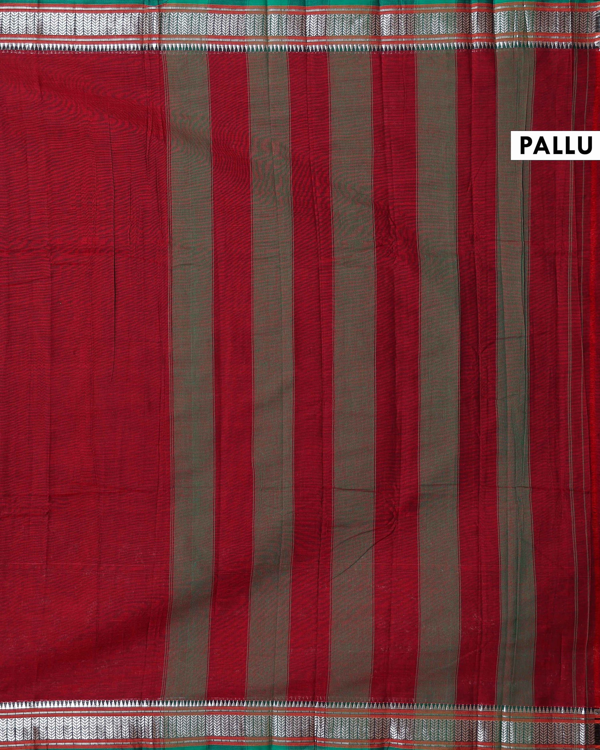 Handloom Narayanpet Cotton Saree with Traditional Temple Border and Striped Pallu - Maroon