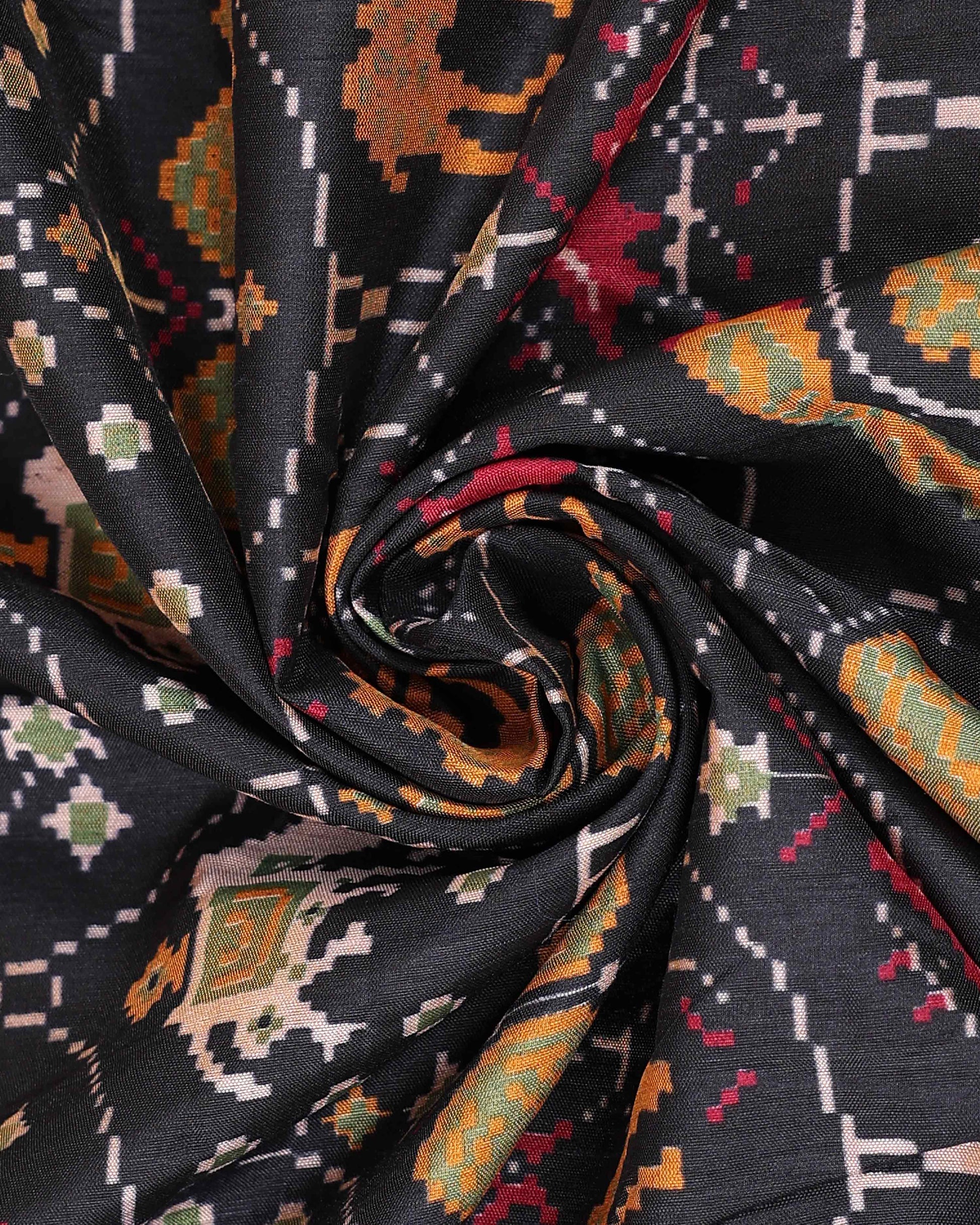 Handloom Semi Patola Silk Saree with Traditional Ikkat Motifs and Zari Border - Black