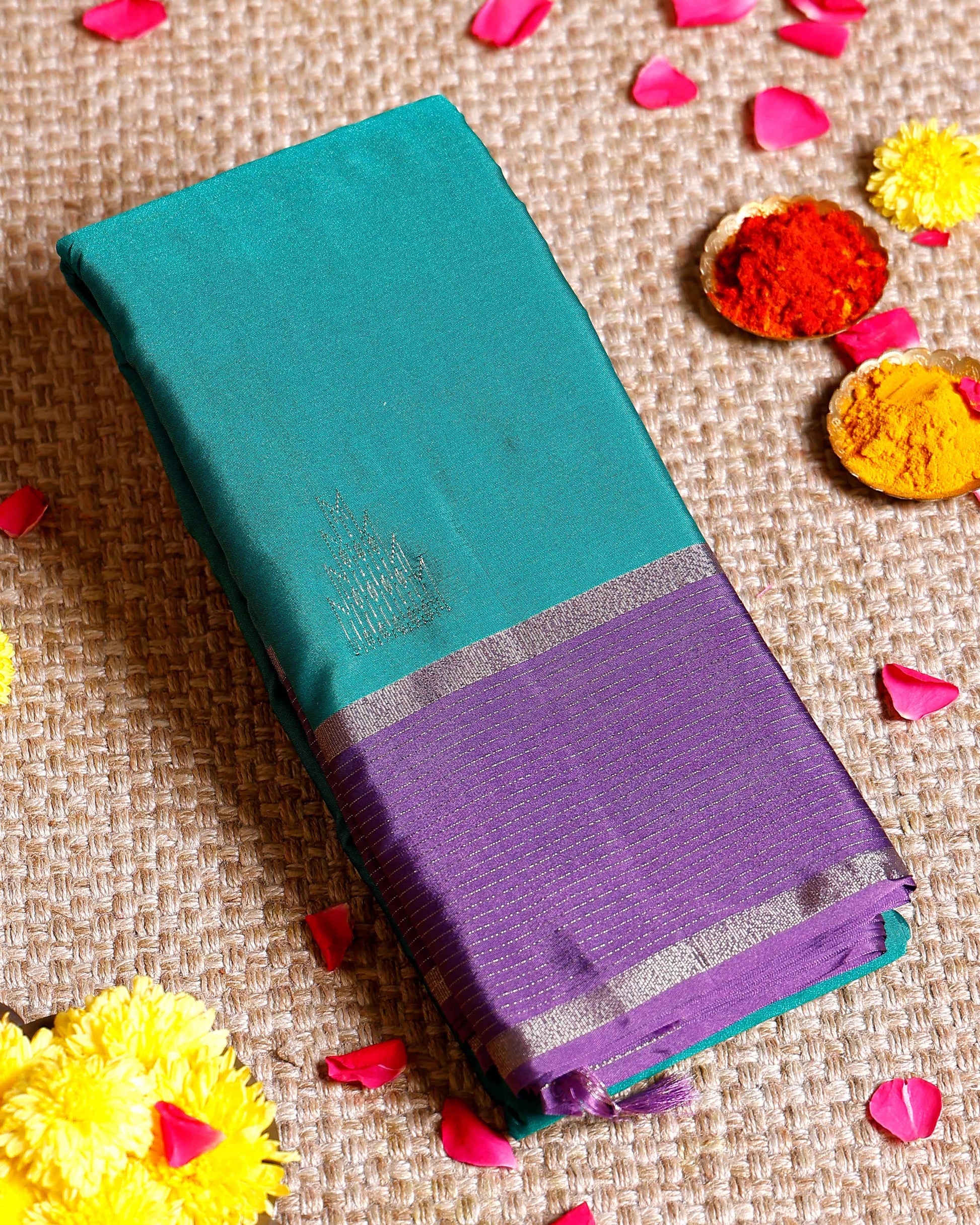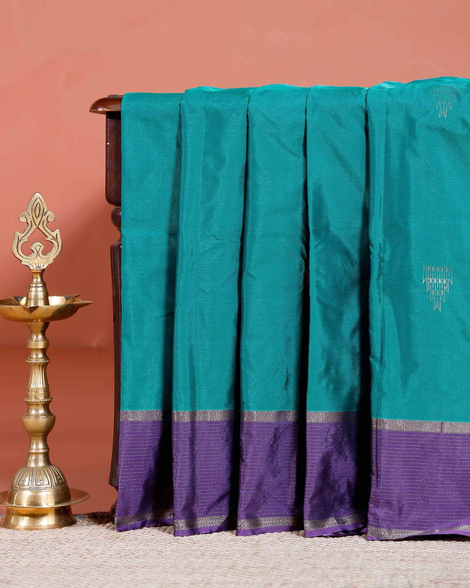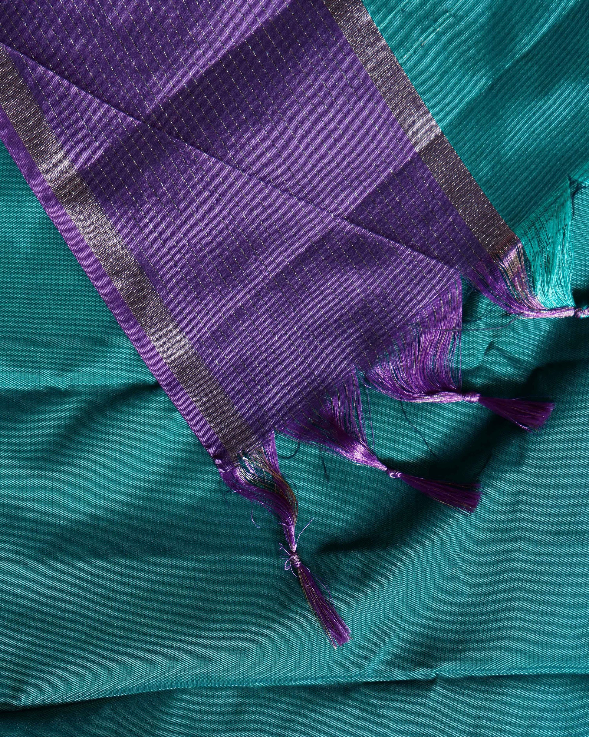 Elegant Handloom Soft Silk Saree with Contrasting Zari Border - Teal
