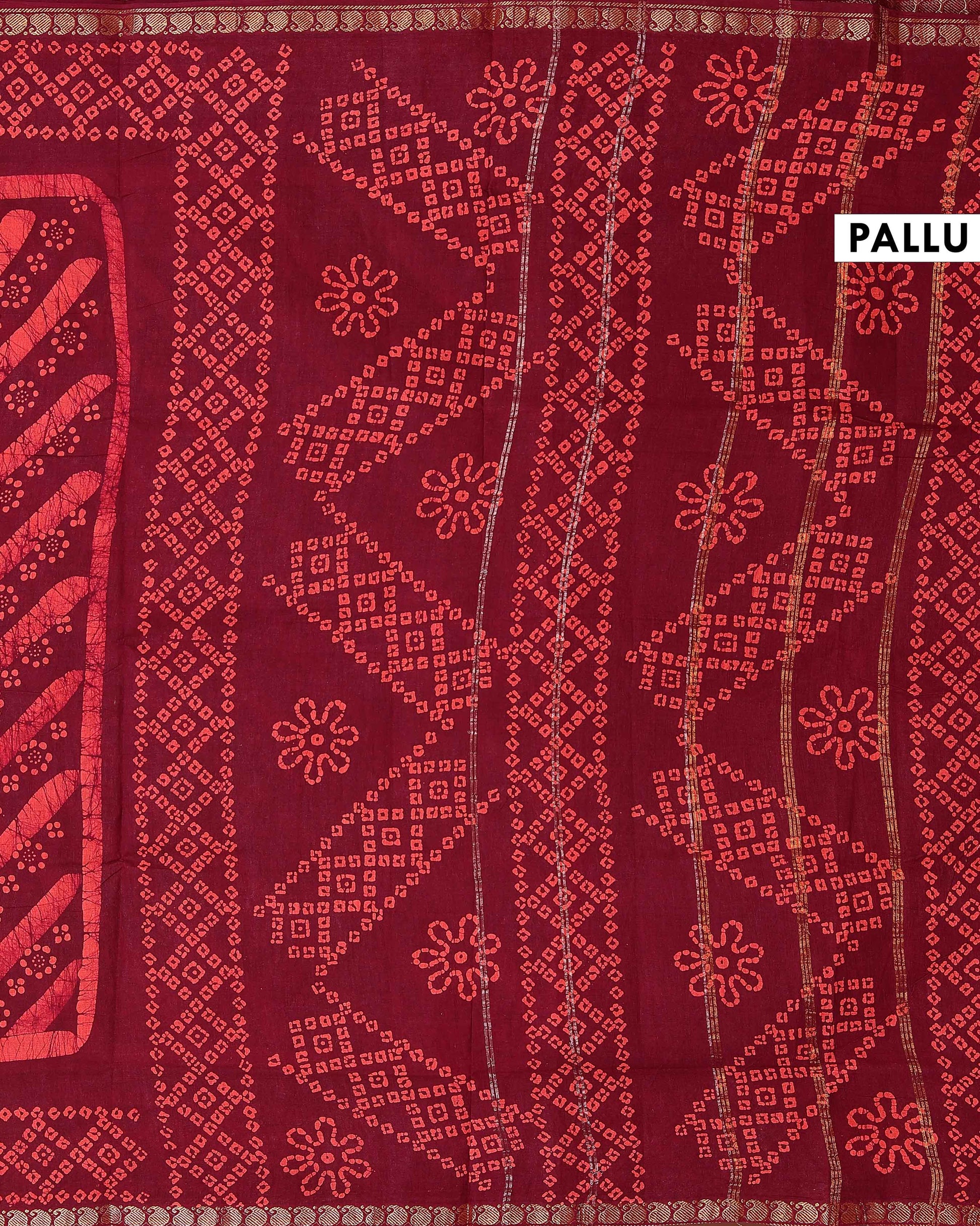 - Elevate your style with this stunning Dark Maroon sungudi cotton saree traditional hand block printed motifs and a classic border.