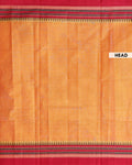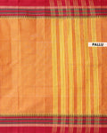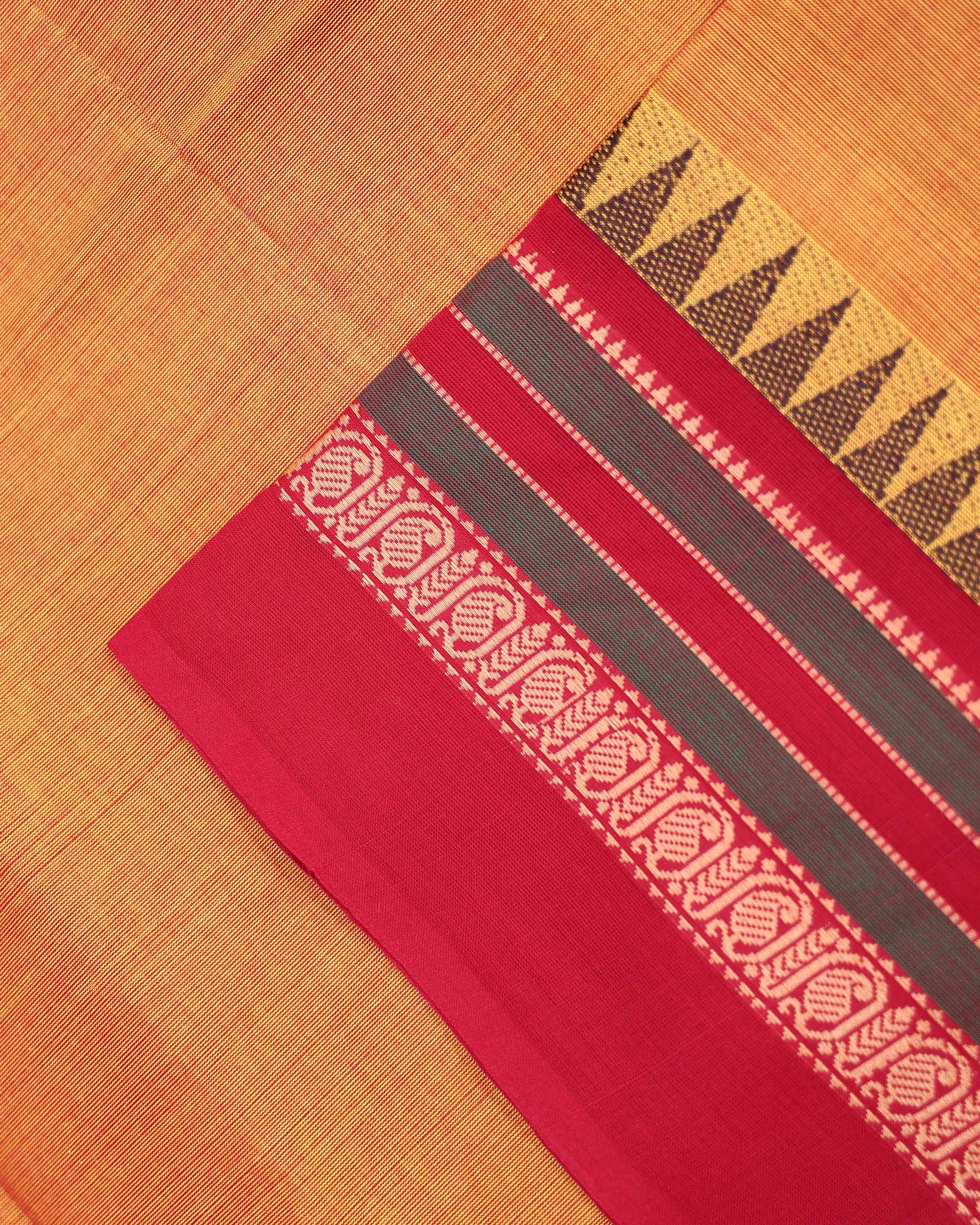 - Handwoven Orange Venkatagiri Cotton Saree with Traditional Red Temple Motif Border