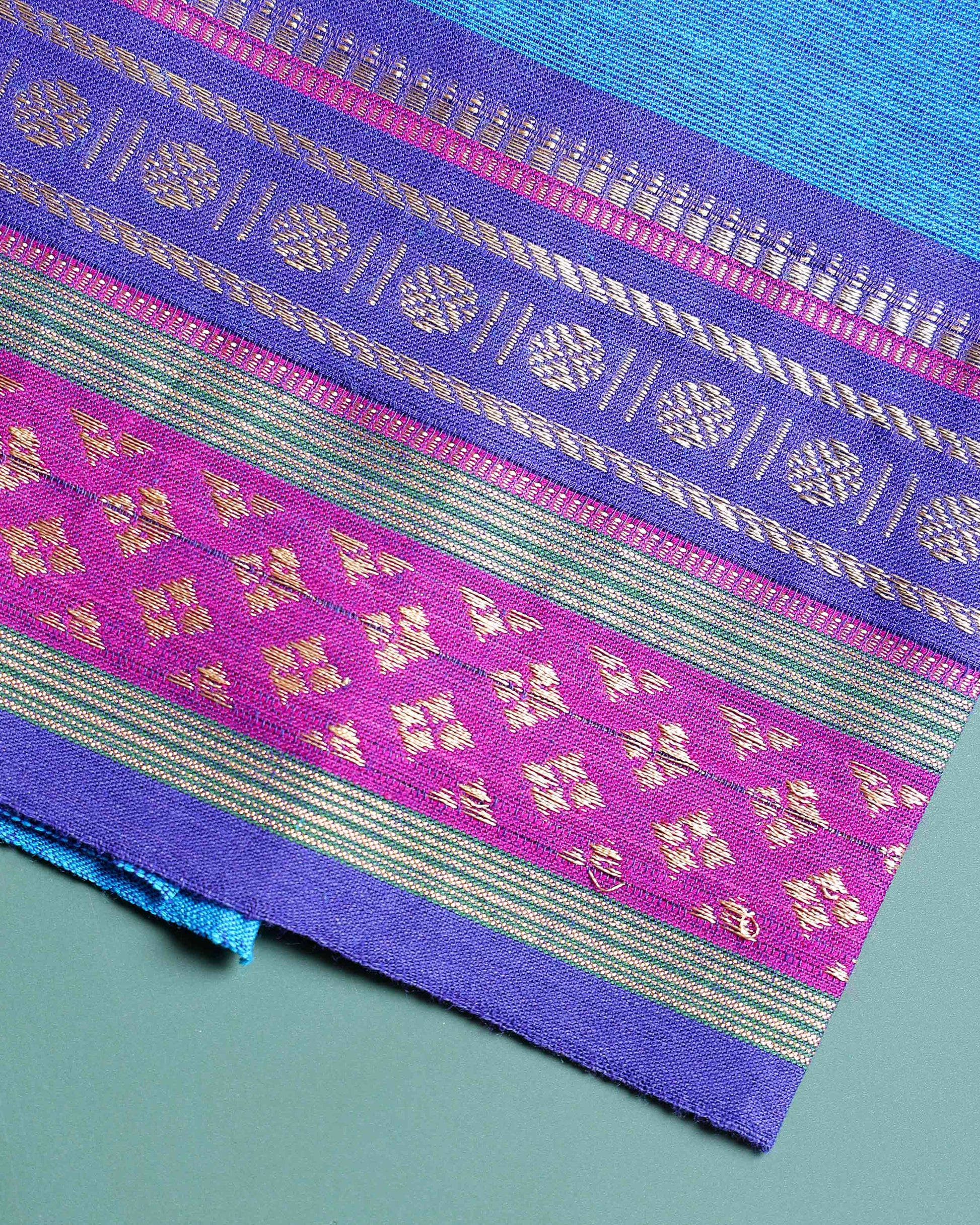 Handloom Woven Blouse Material with Traditional Border - Blue