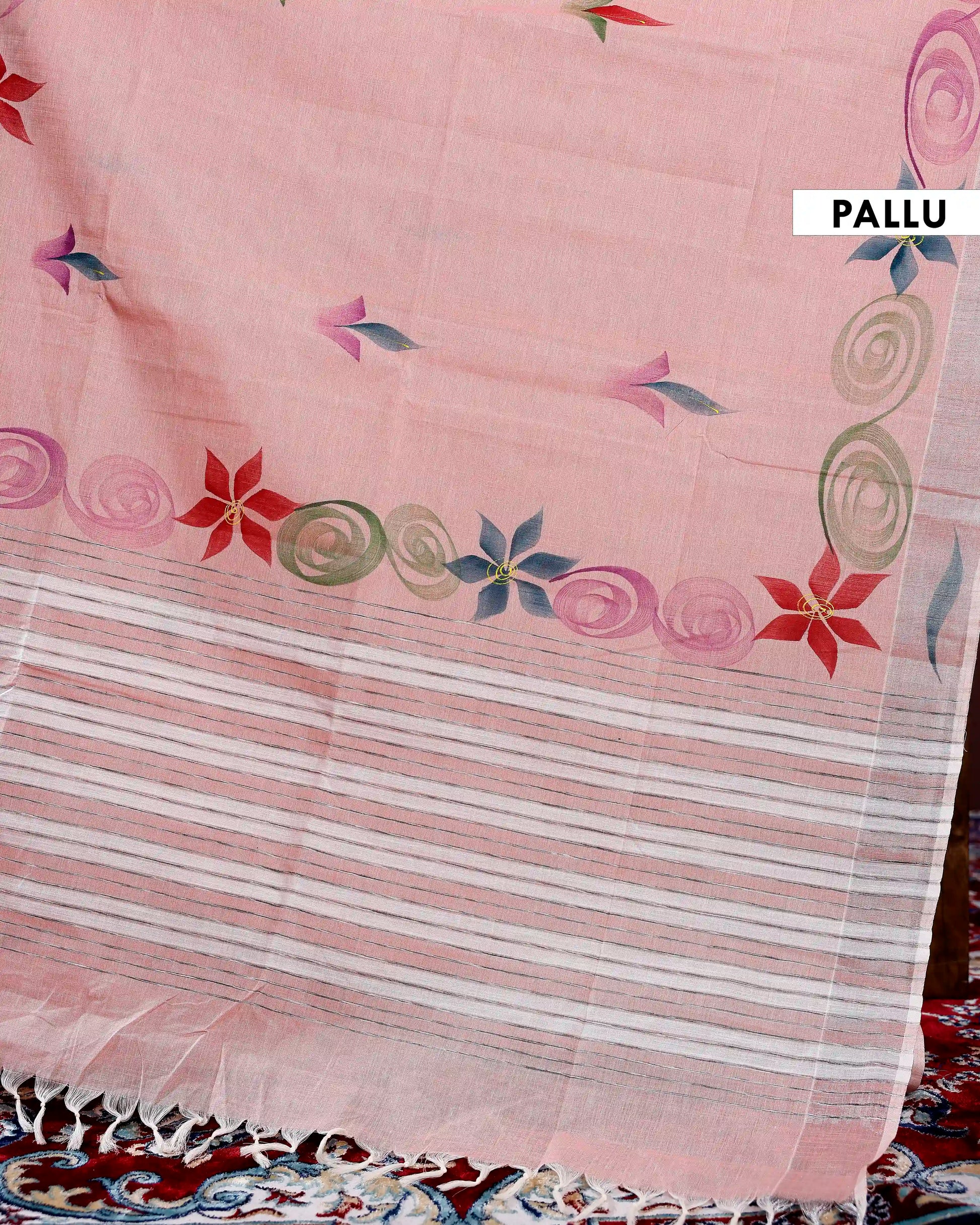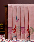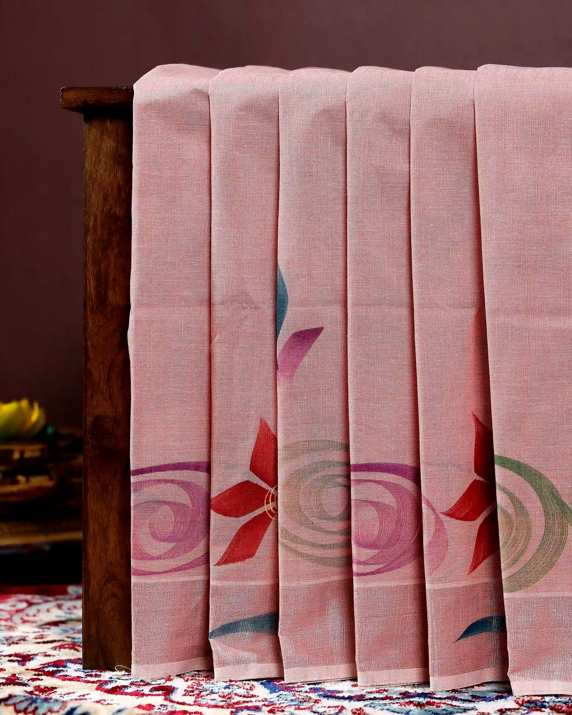 Handpainted Khadi Cotton Saree with Elegant Floral and Artistic Swirl Pattern - Pink