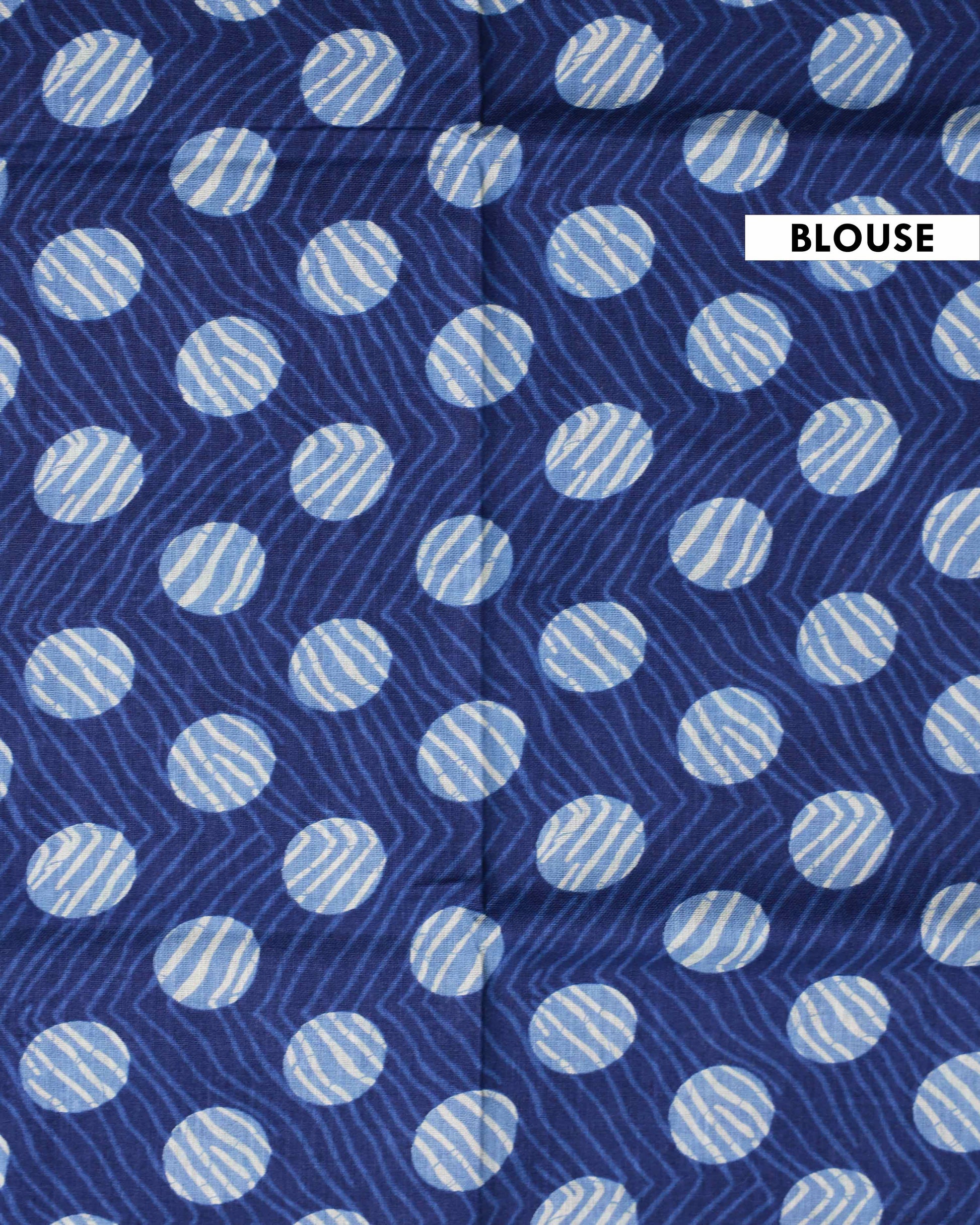 Handwoven Khadi Cotton Saree with Contrast Printed Blouse and Tassel Accents - Blue
