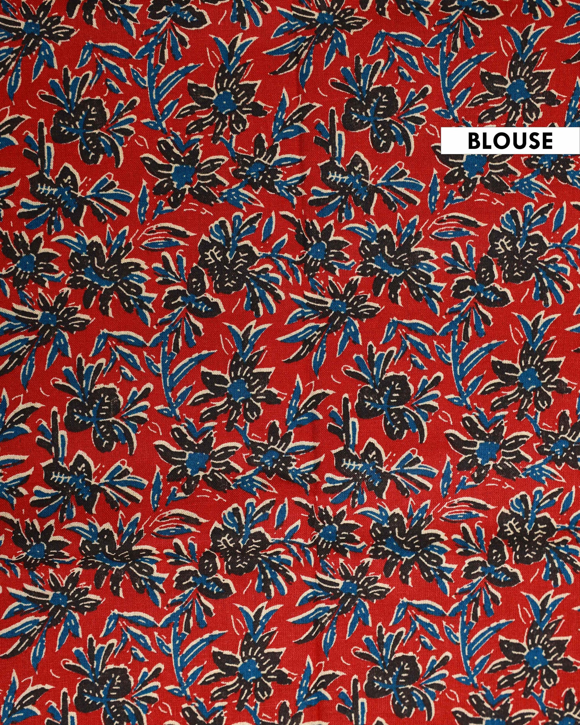 Handwoven Khadi Cotton Saree with Contrast Printed Blouse and Tassel Accents - Red