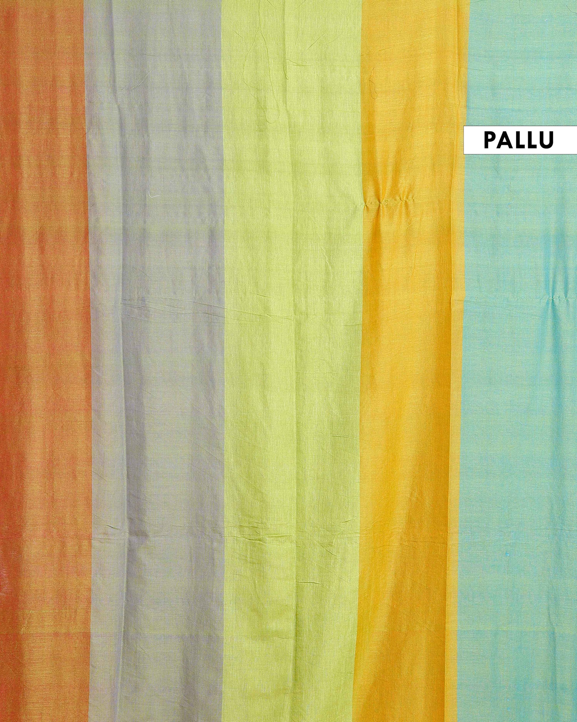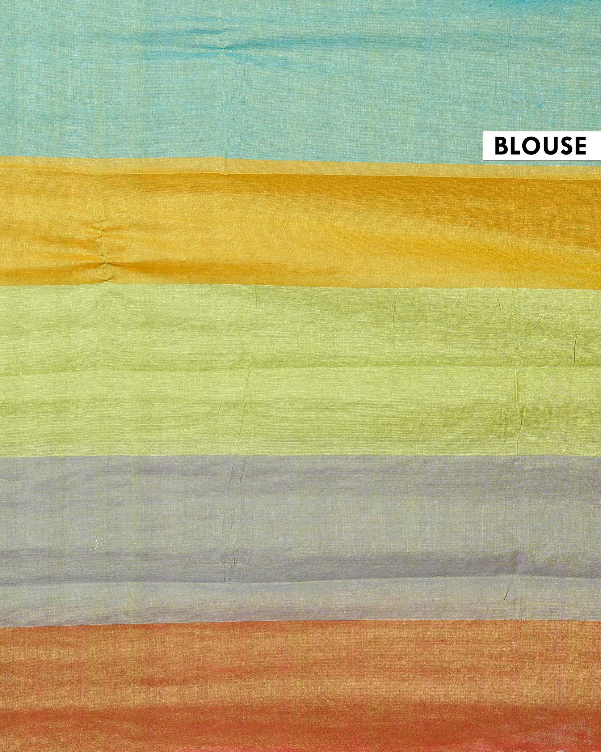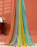 Handwoven Mul Mul Cotton Saree with Bold Striped Pattern and Tassel Detailing – Multi
