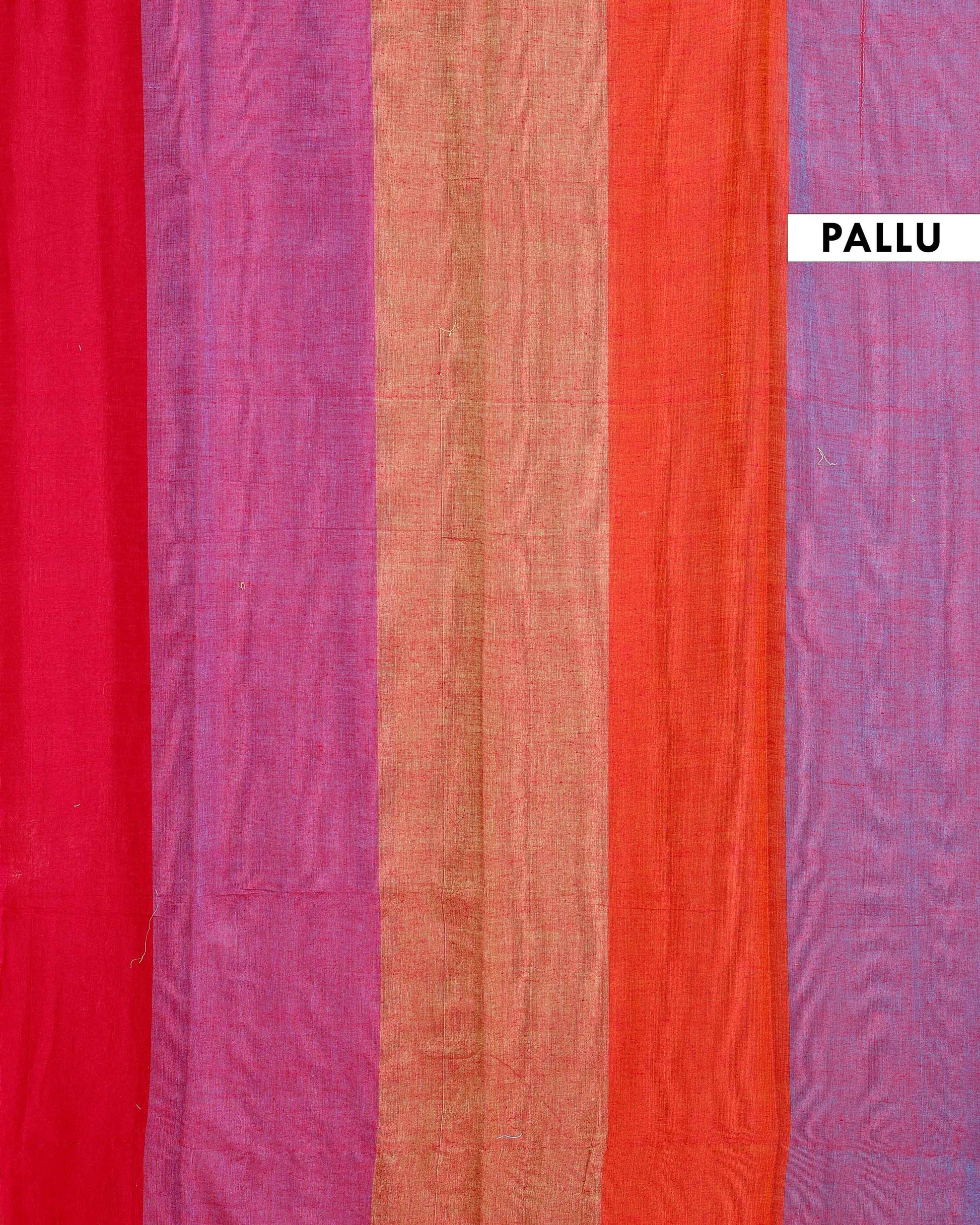 Handwoven Mul Mul Cotton Saree with Bold Striped Pattern and Tassel Detailing – Multi