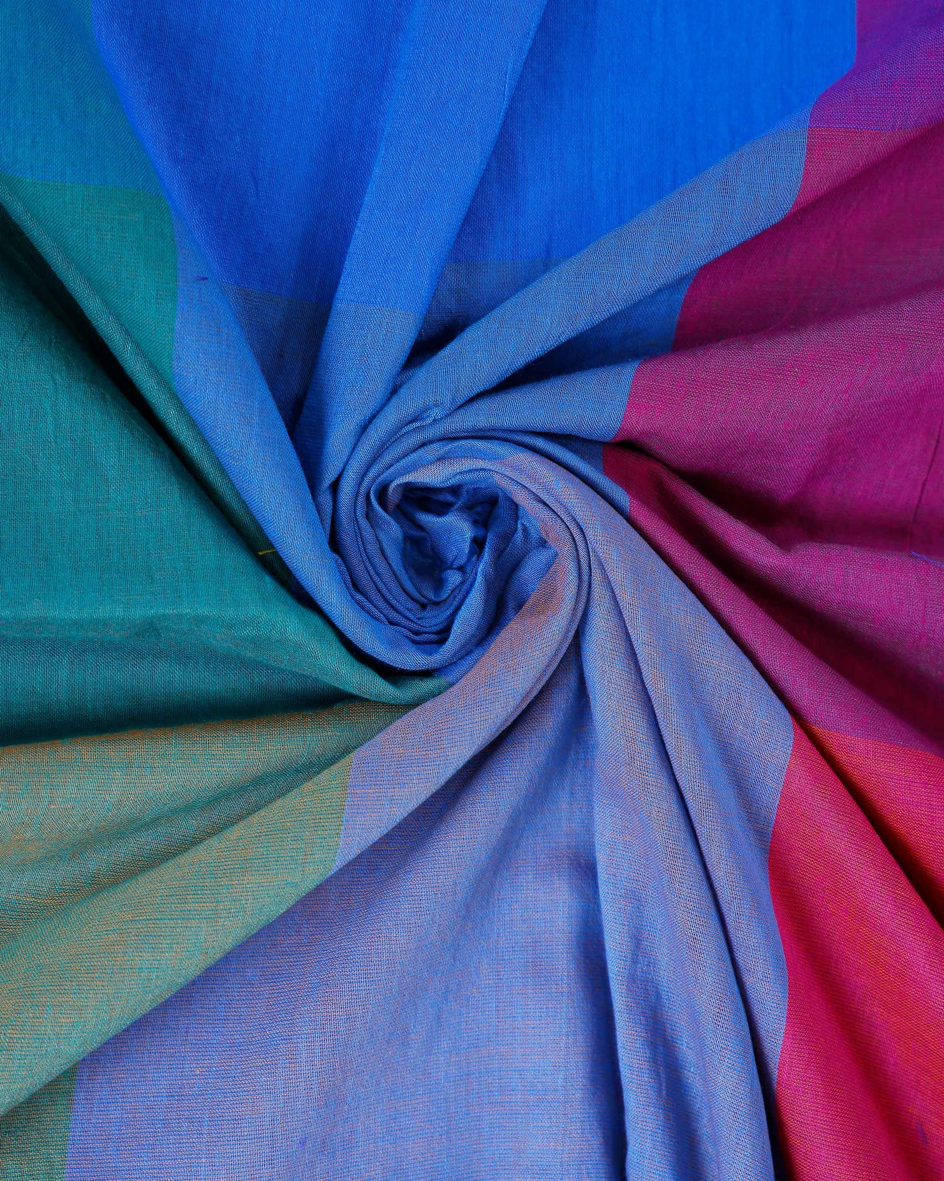 Handwoven Mul Mul Cotton Saree with Bold Striped Pattern and Tassel Detailing - Multi