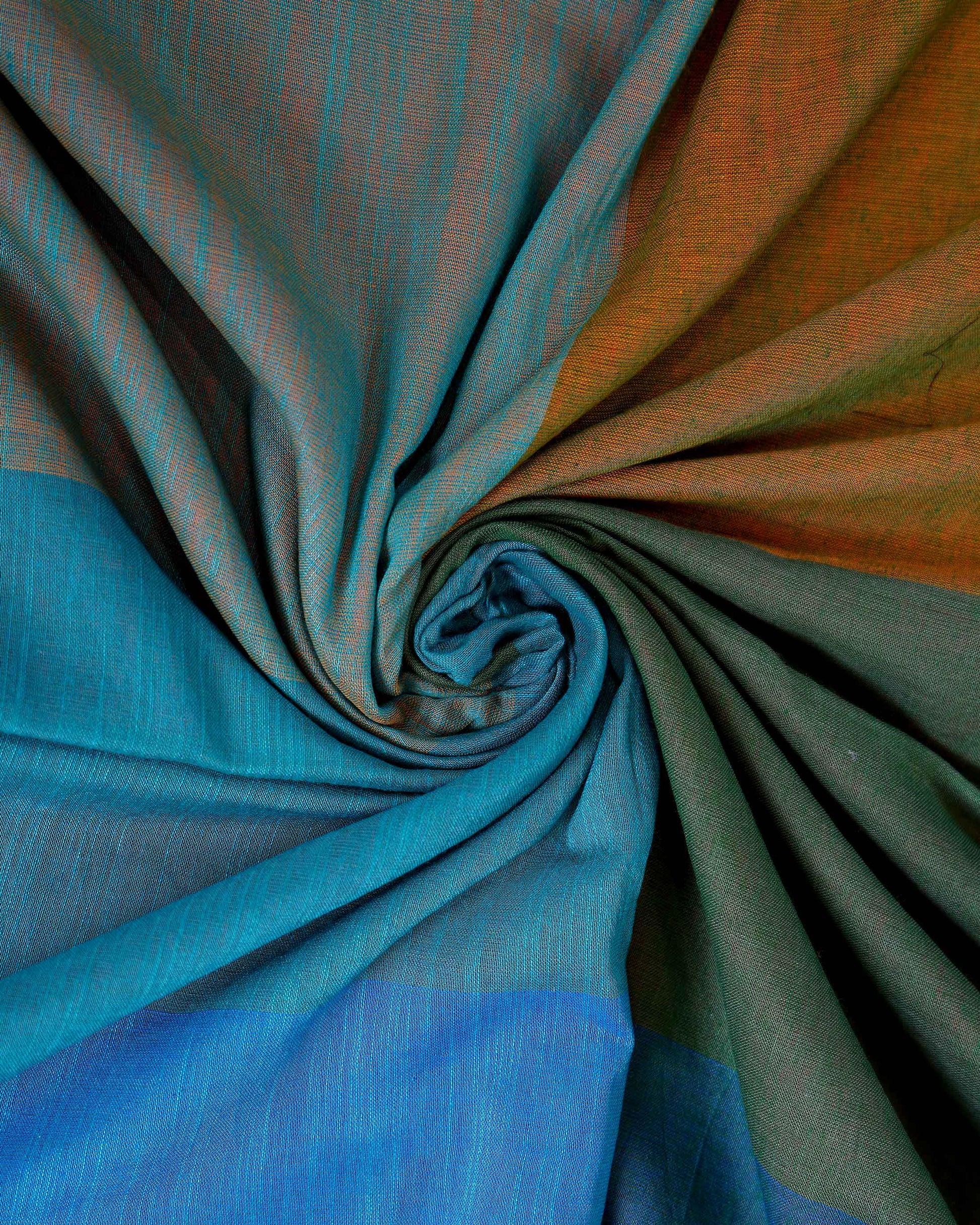 Handwoven Mul Mul Cotton Saree with Bold Striped Pattern and Tassel Detailing - Multi
