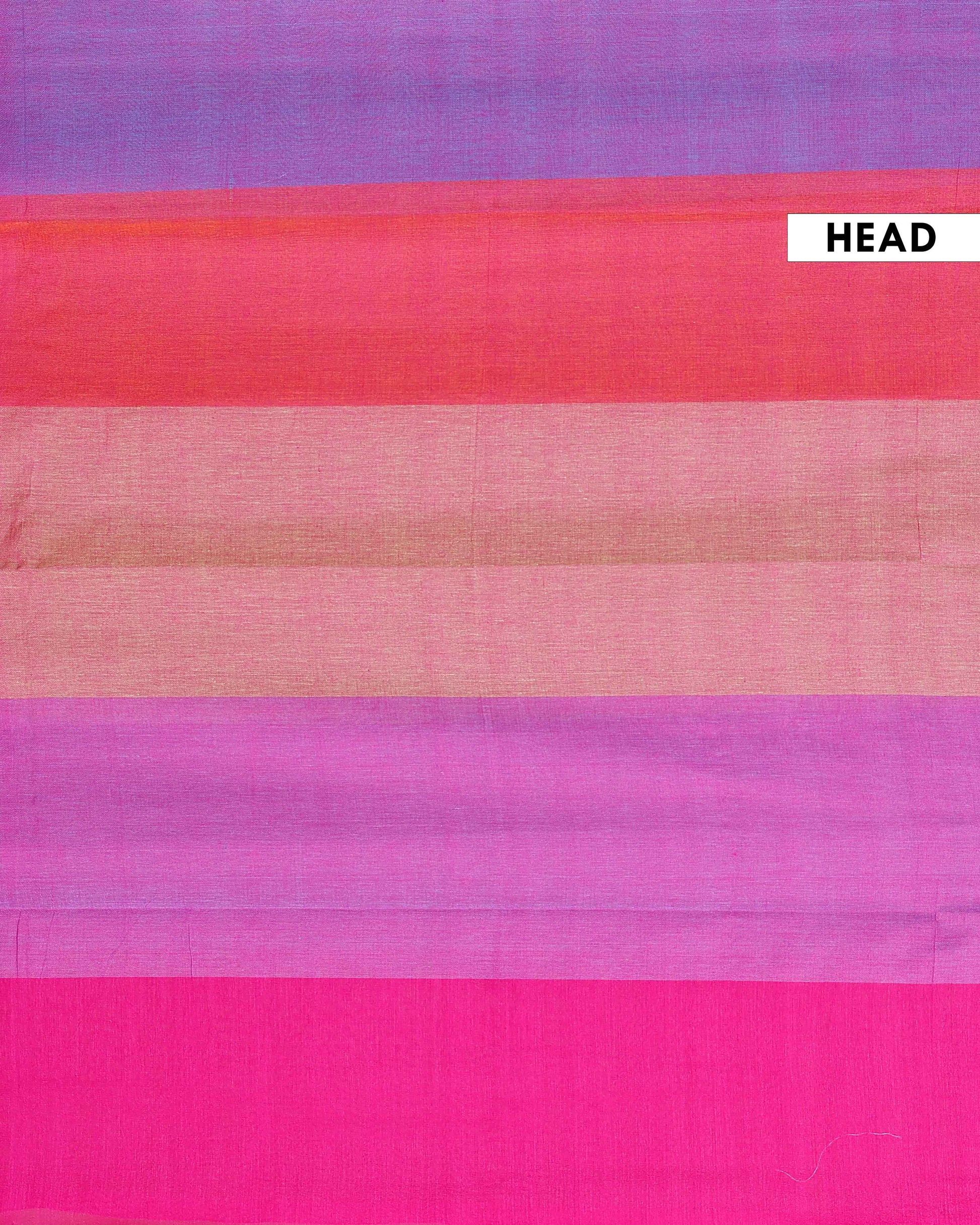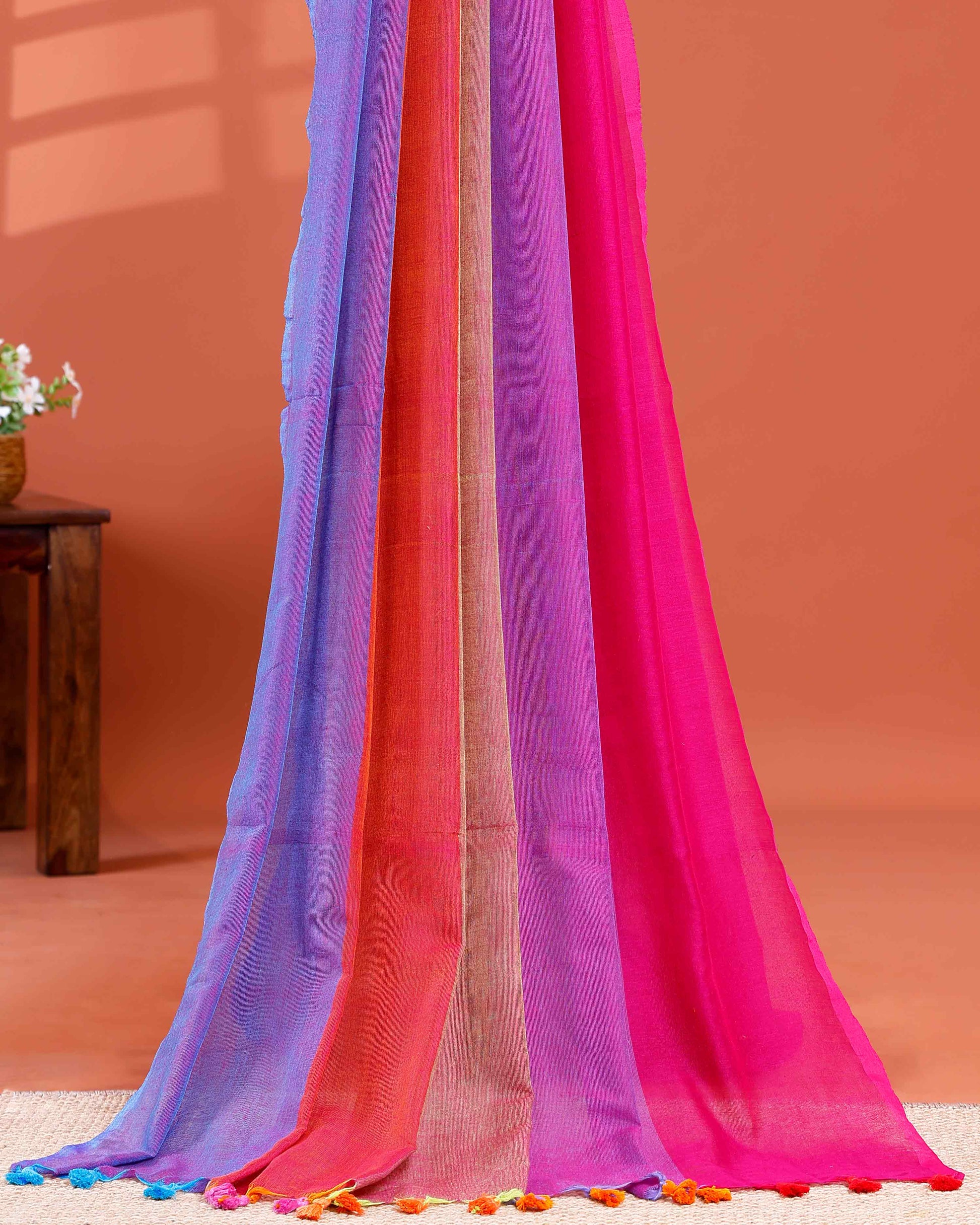 Handwoven Mul Mul Cotton Saree with Bold Striped Pattern and Tassel Detailing - Multi