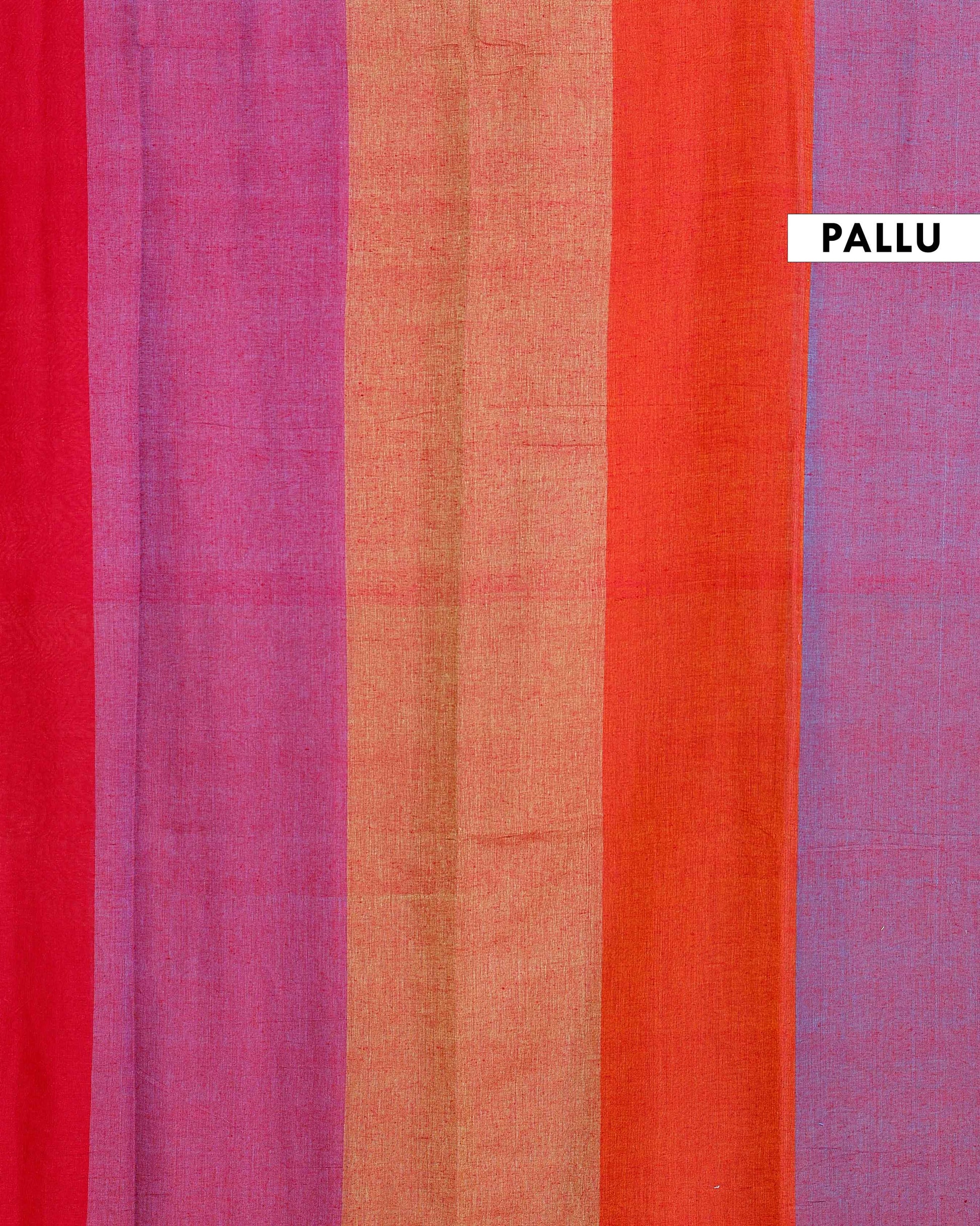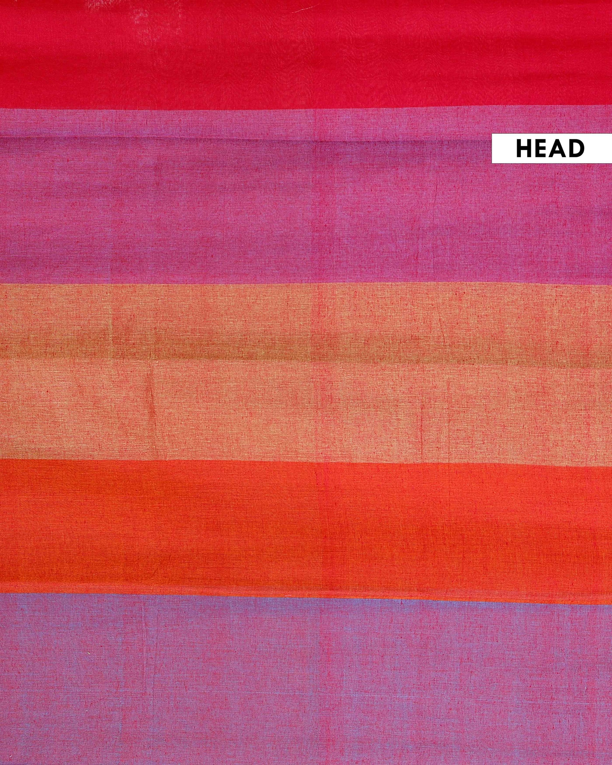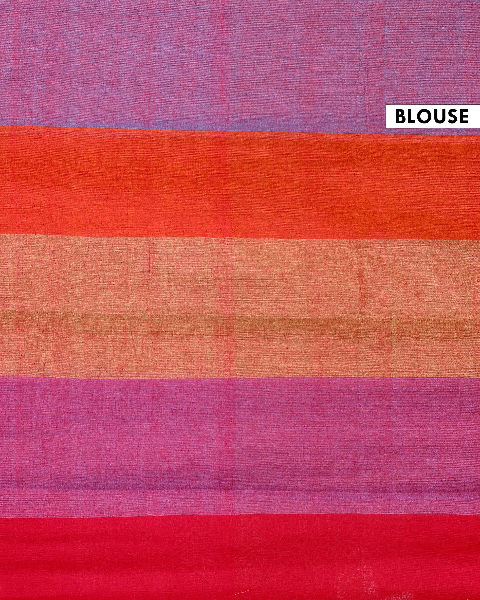 Handwoven Mul Mul Cotton Saree with Bold Striped Pattern and Tassel Detailing - Multi