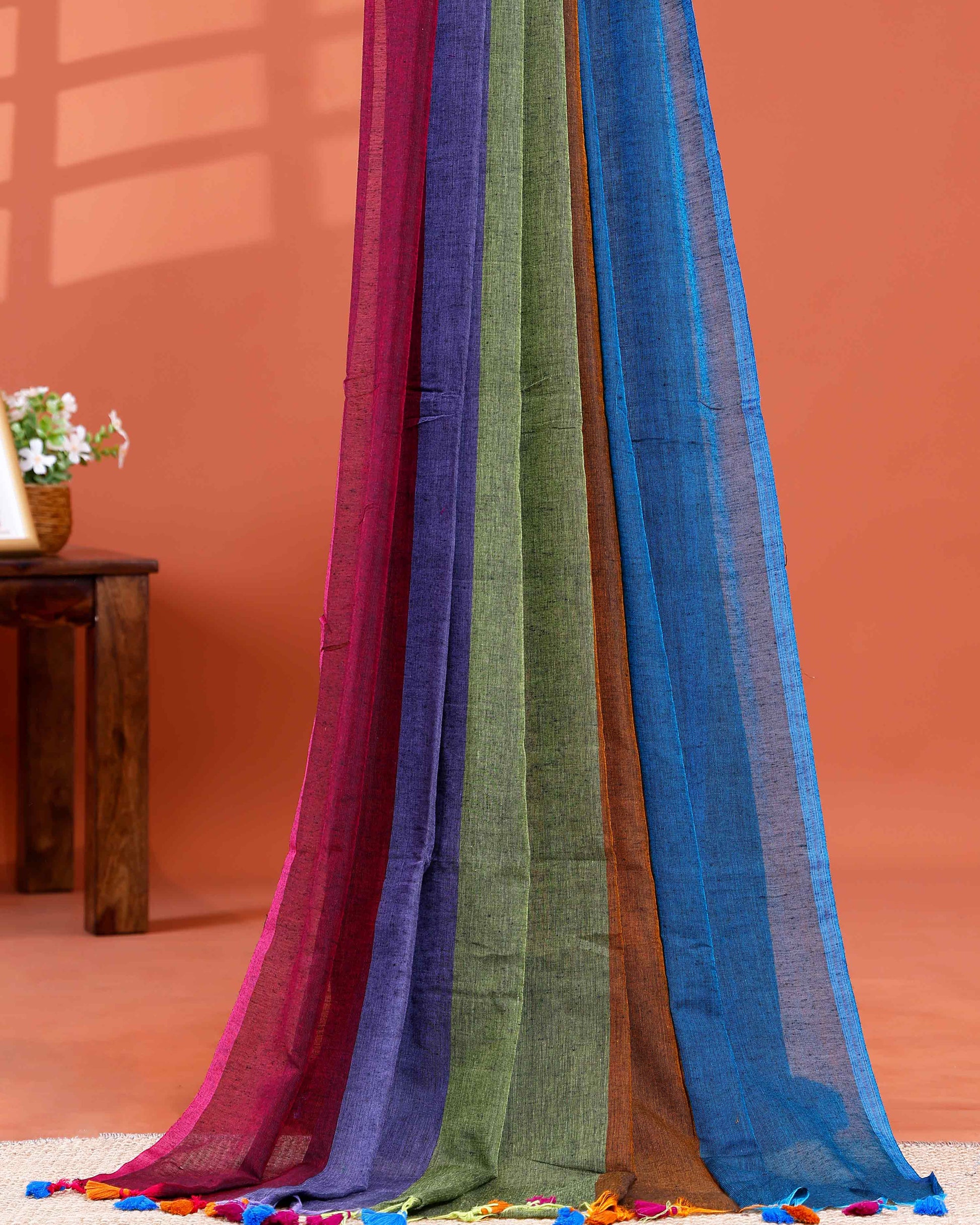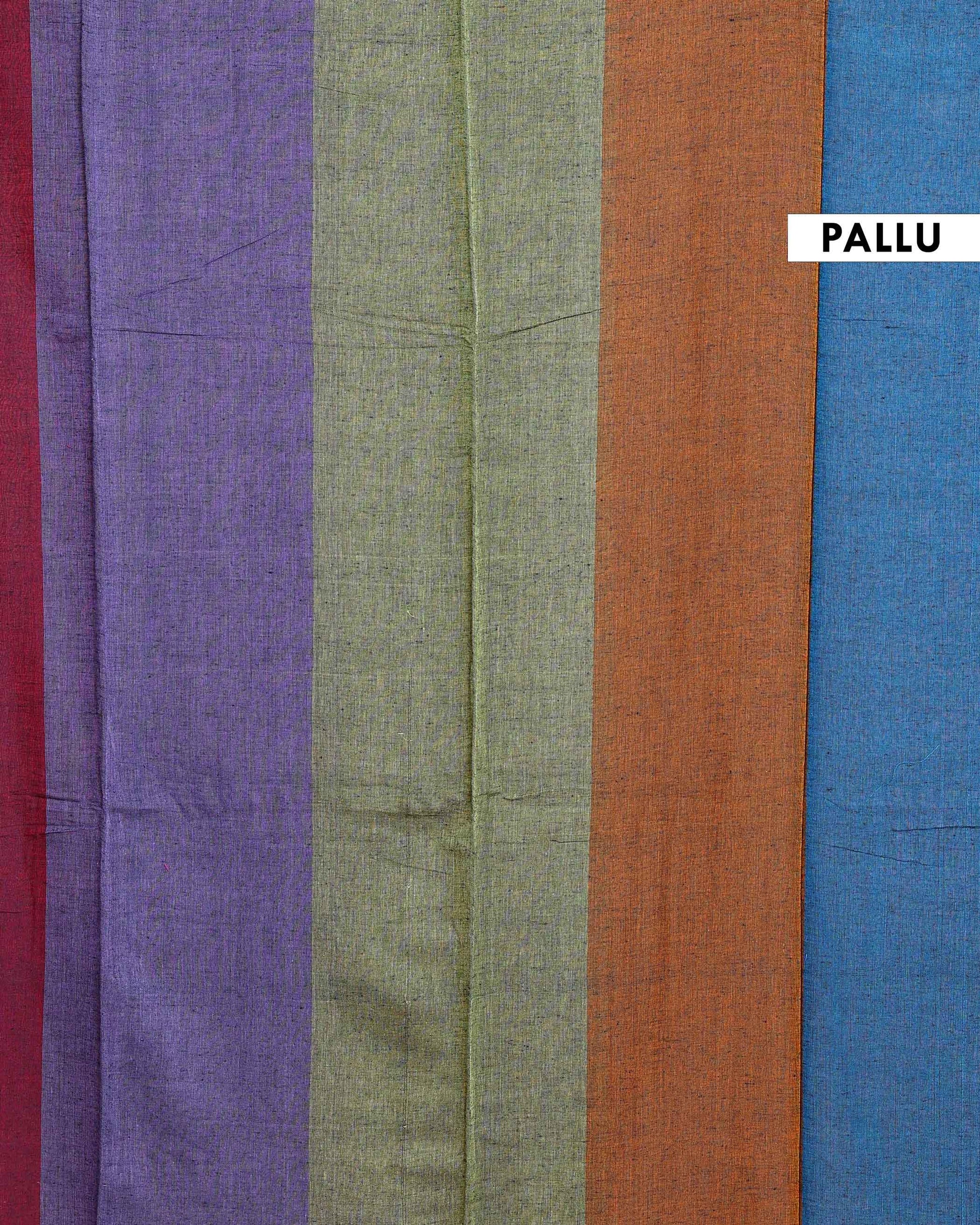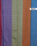 Handwoven Mul Mul Cotton Saree with Bold Striped Pattern and Tassel Detailing - Multi