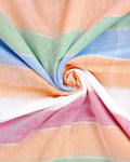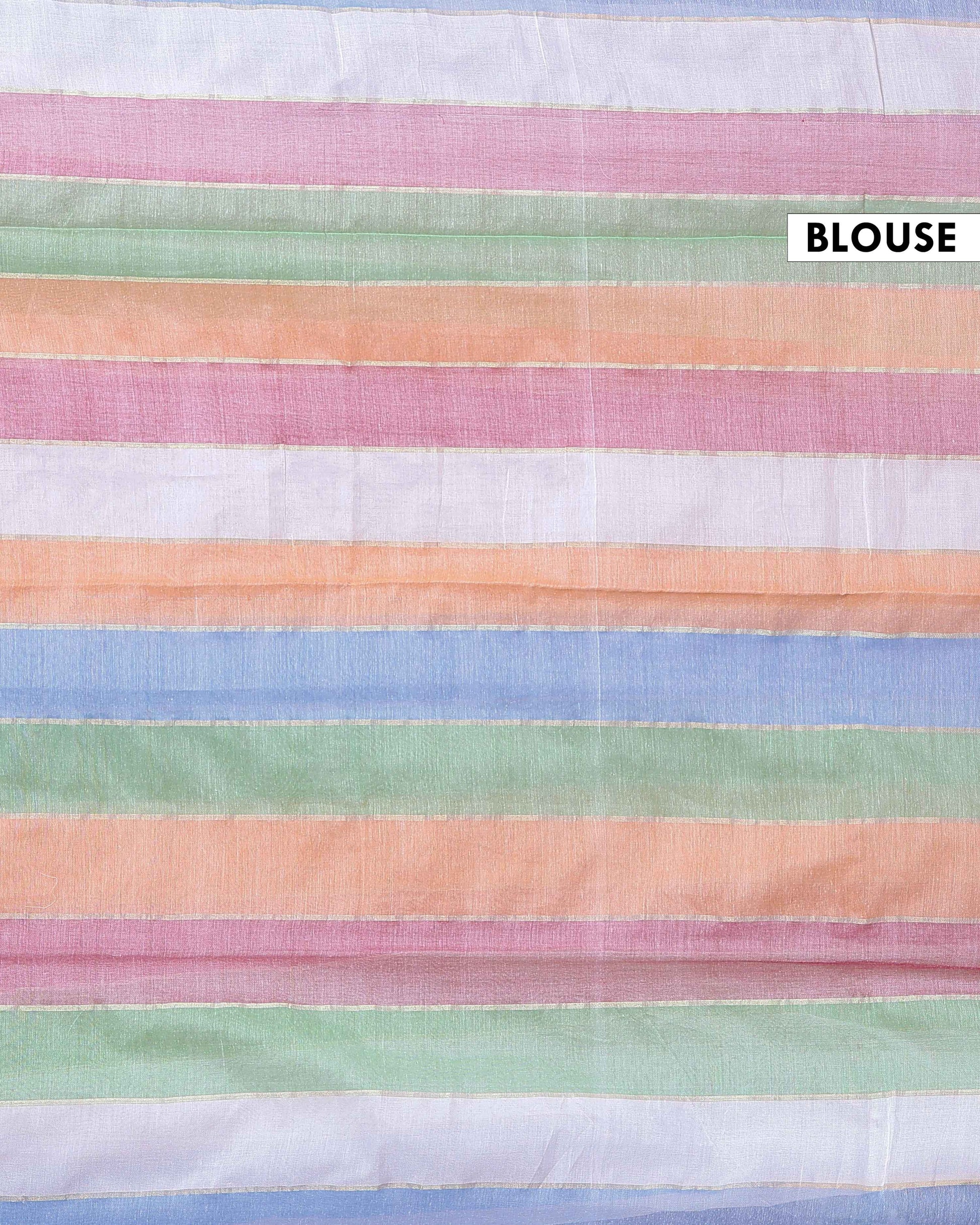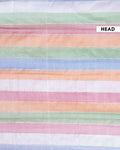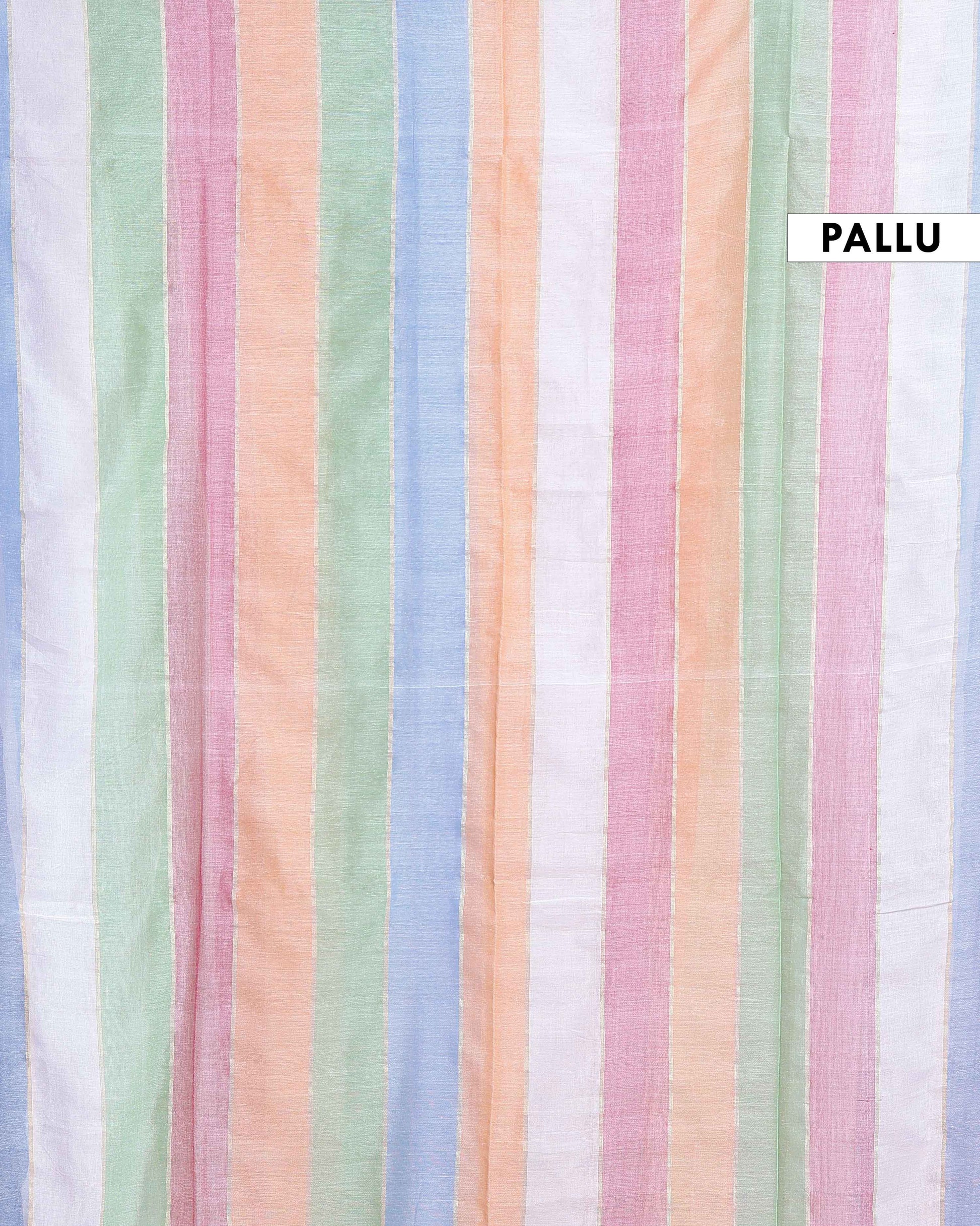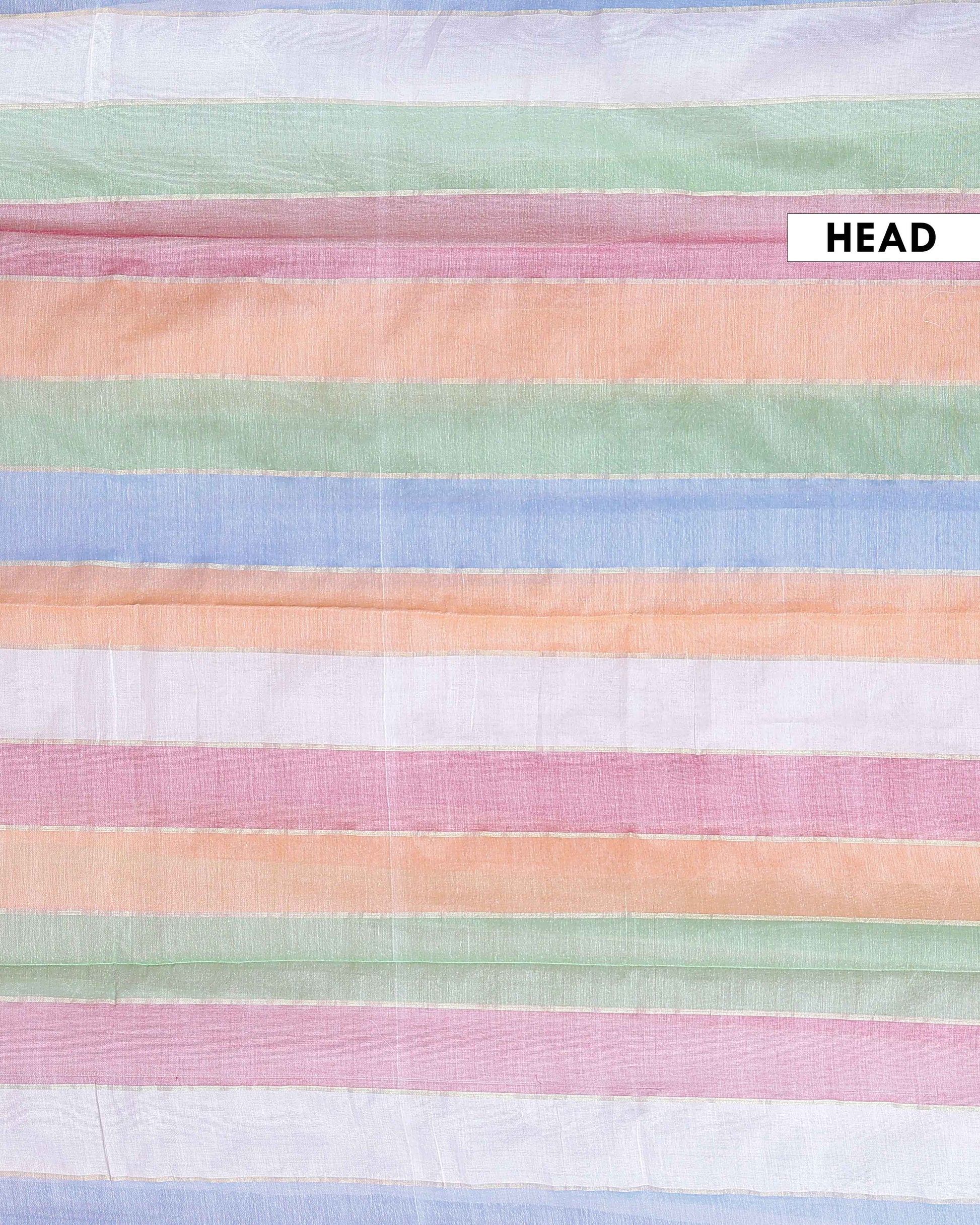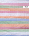 - Soft and lightweight Mul Mul Cotton Saree pastel multi stripes for a fresh and graceful look.