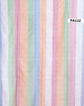 Handwoven Mul Mul Cotton Saree with Bold Striped Pattern and Tassel Detailing - Multi
