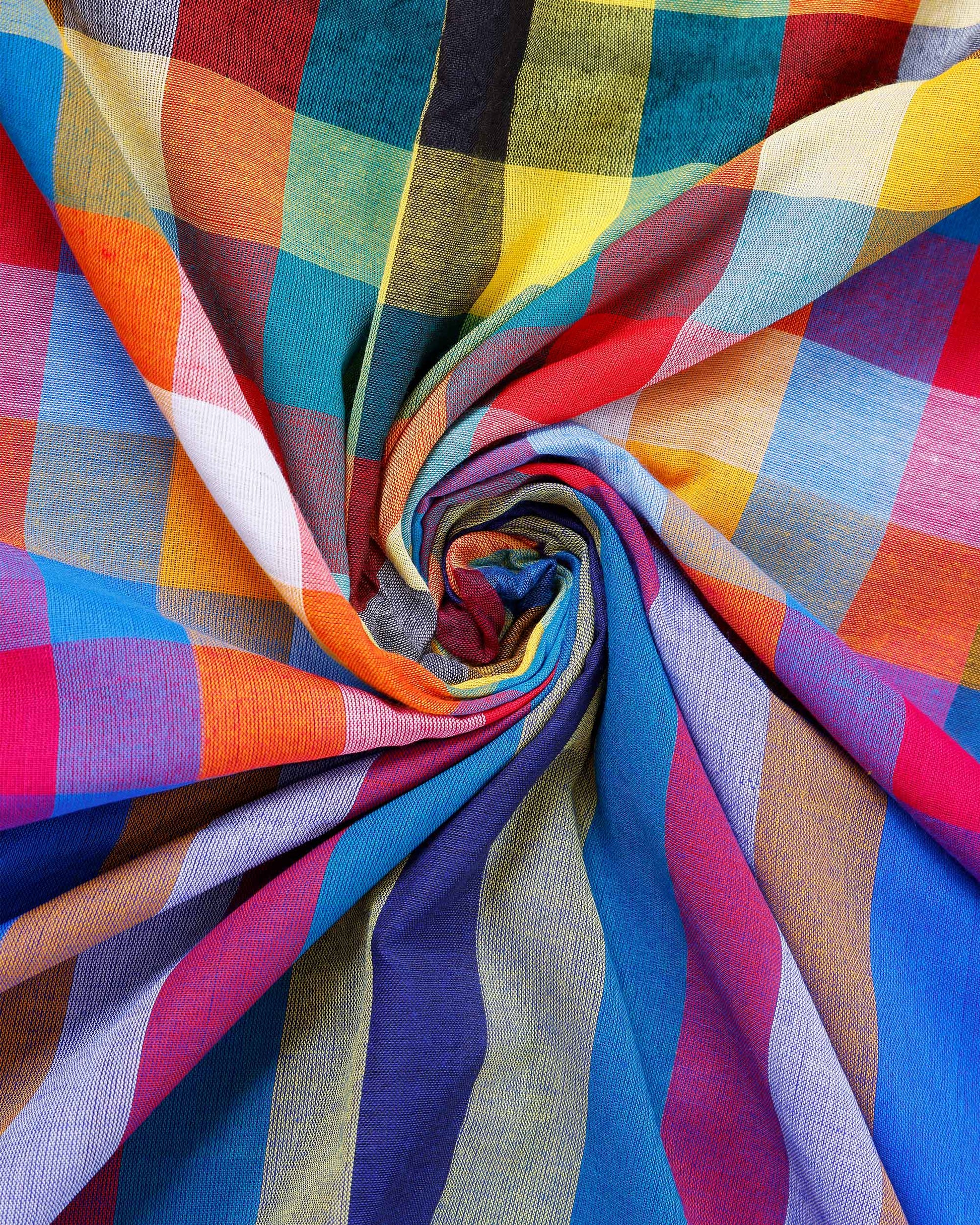- Vibrant Mul Mul Cotton Saree colorful checks and tassel detailing for a lively ethnic style