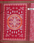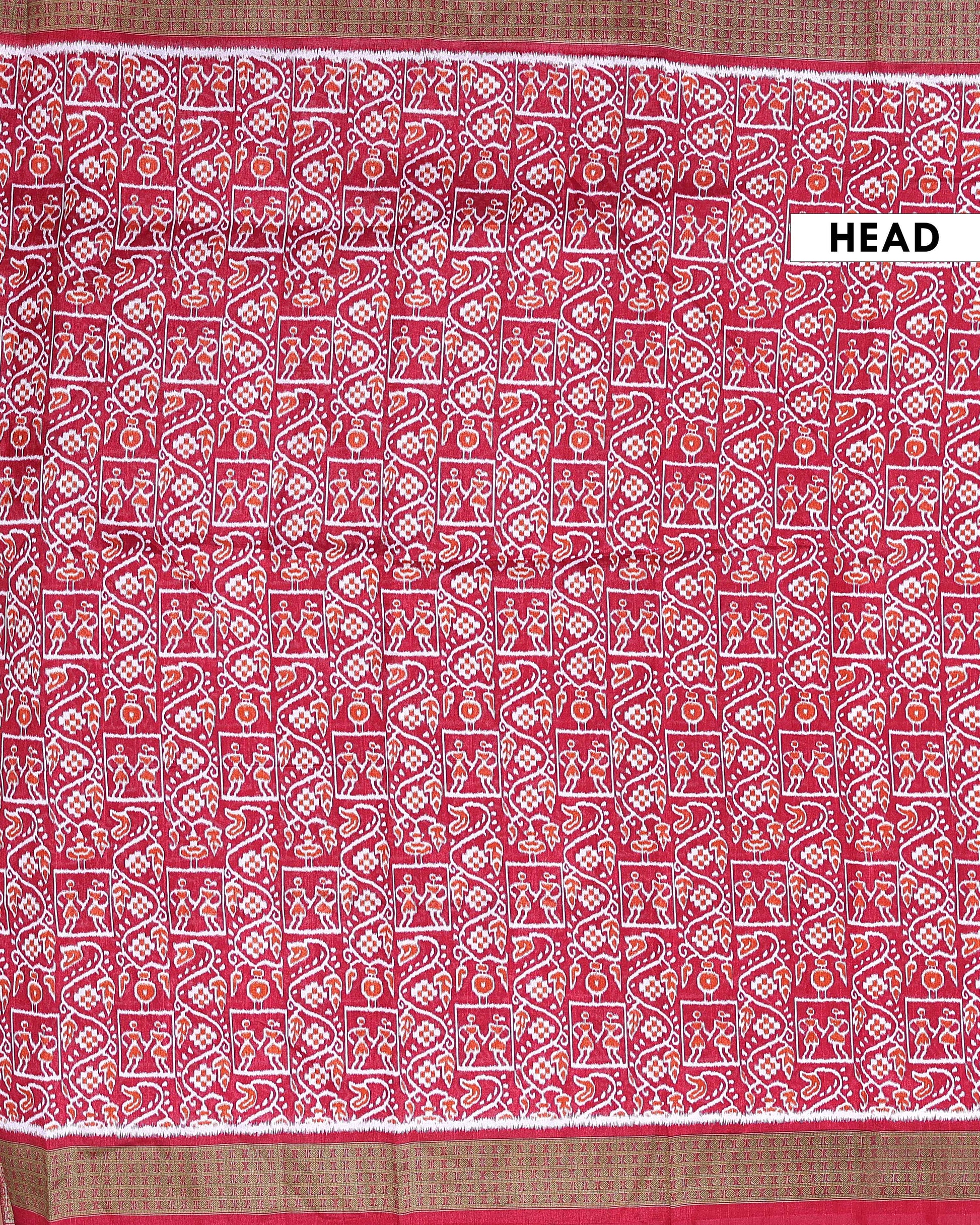 Handwoven Pochampally Ikkat Saree with Traditional Human and Leaf Motifs - Red