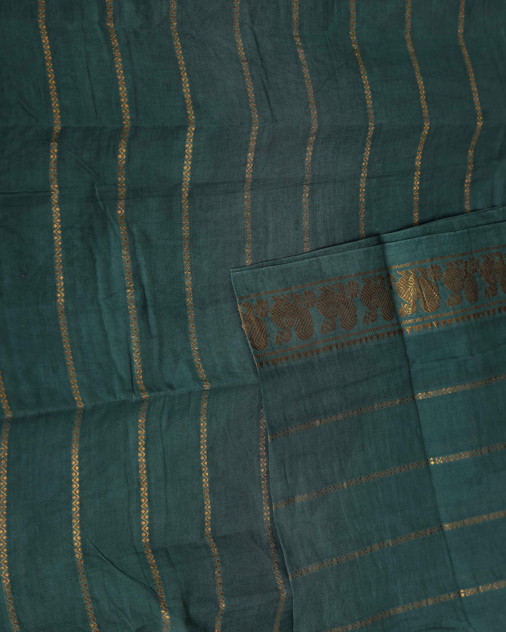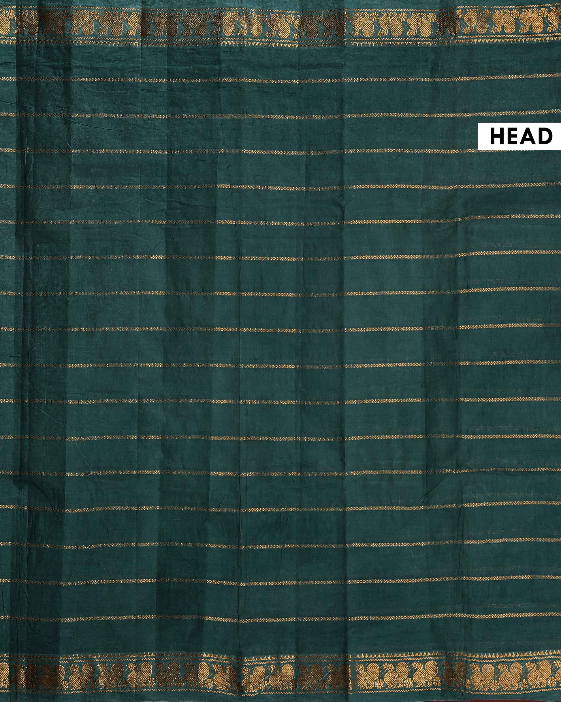 Handwoven Sungudi Cotton Saree with Zari Woven Peacock Motif Border Without Blouse - Green