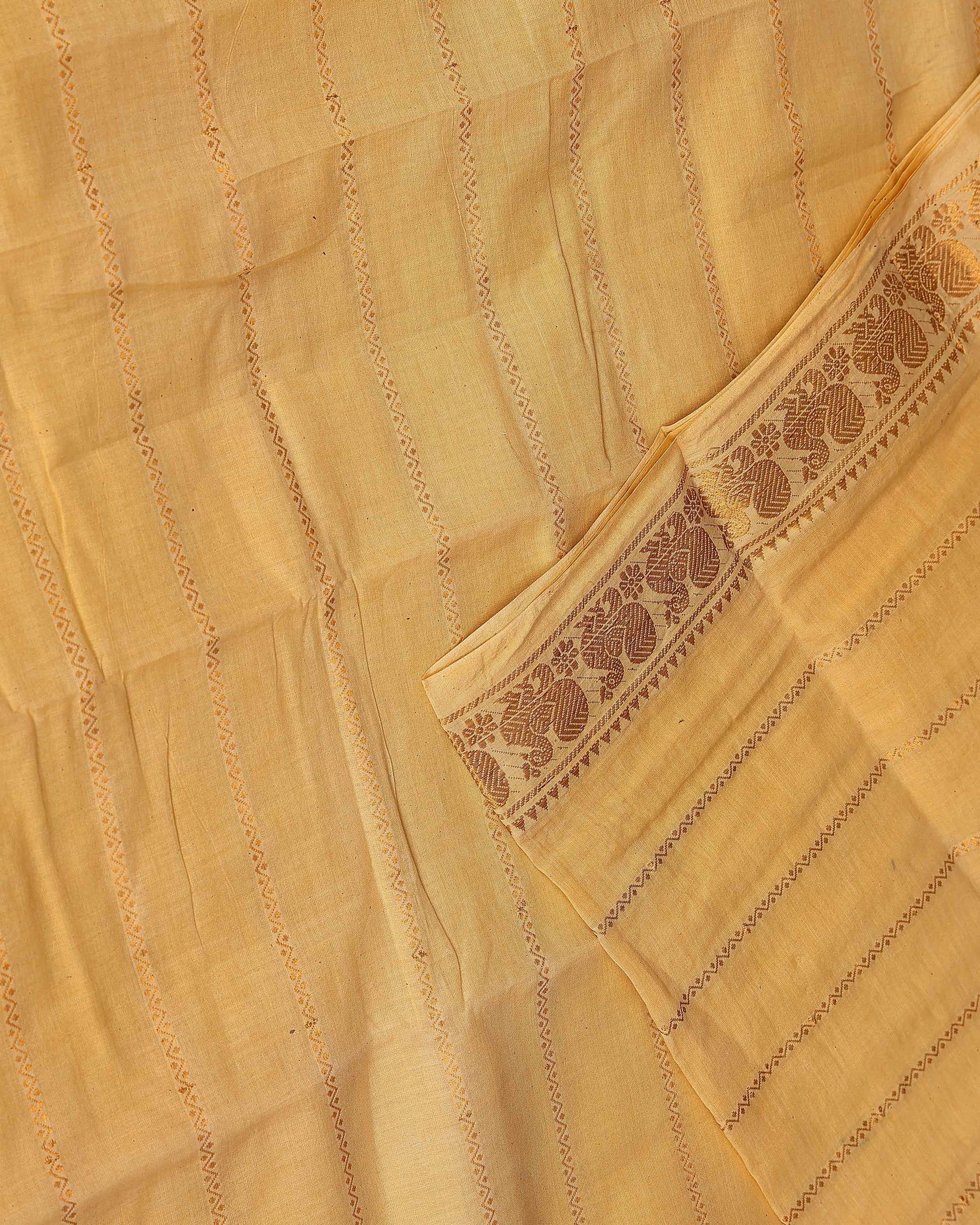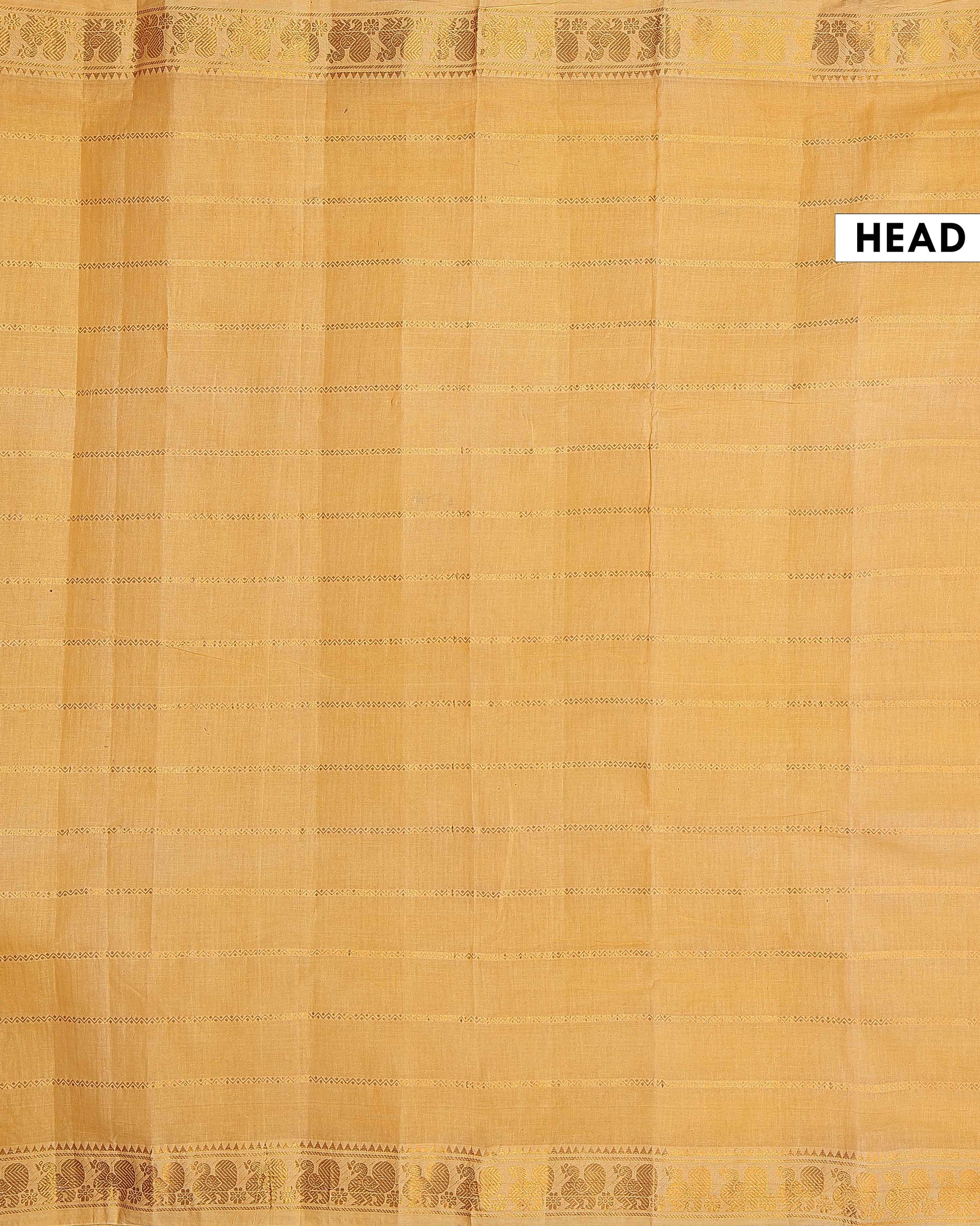 Handwoven Sungudi Cotton Saree with Zari Woven Peacock Motif Border Without Blouse - Yellow