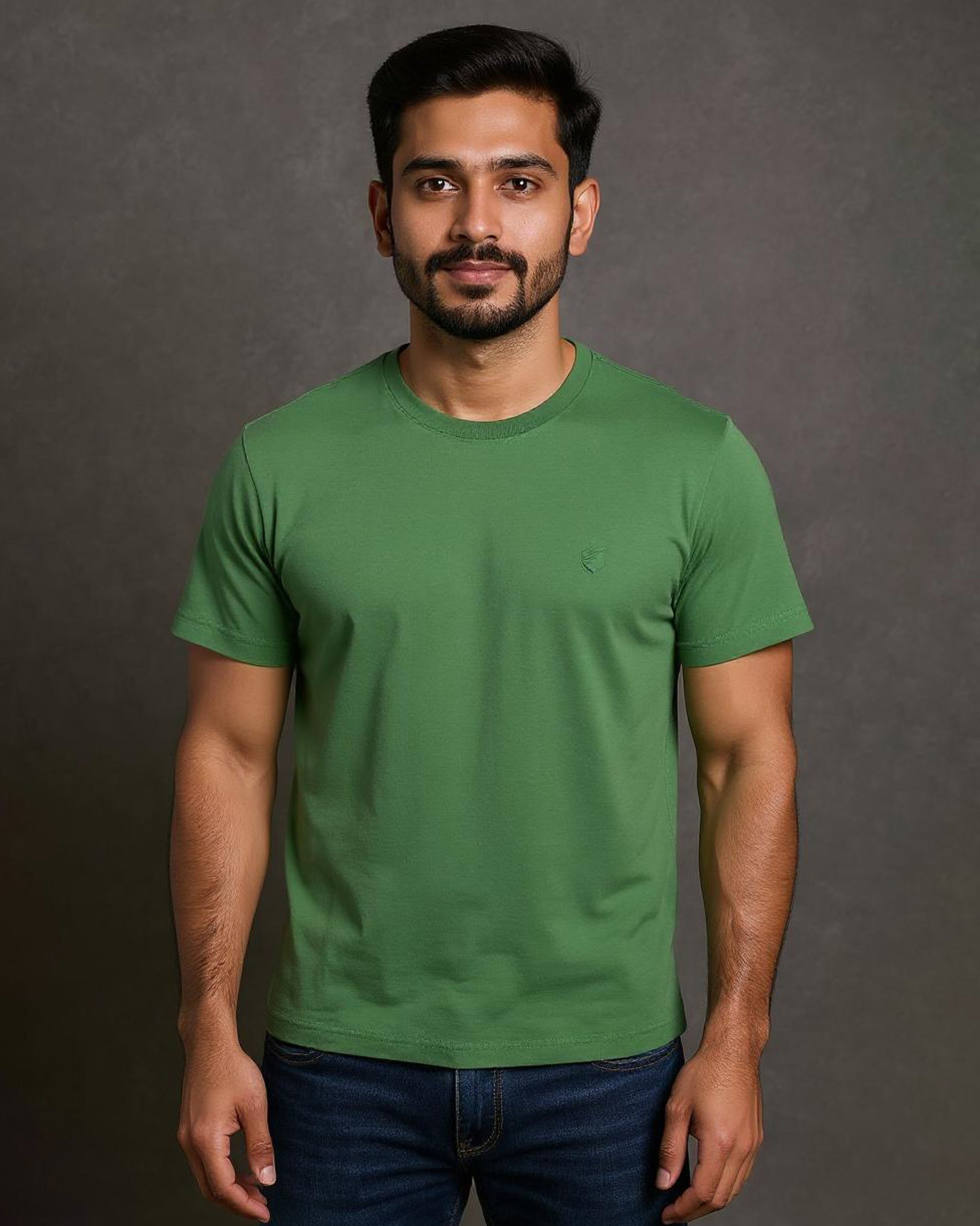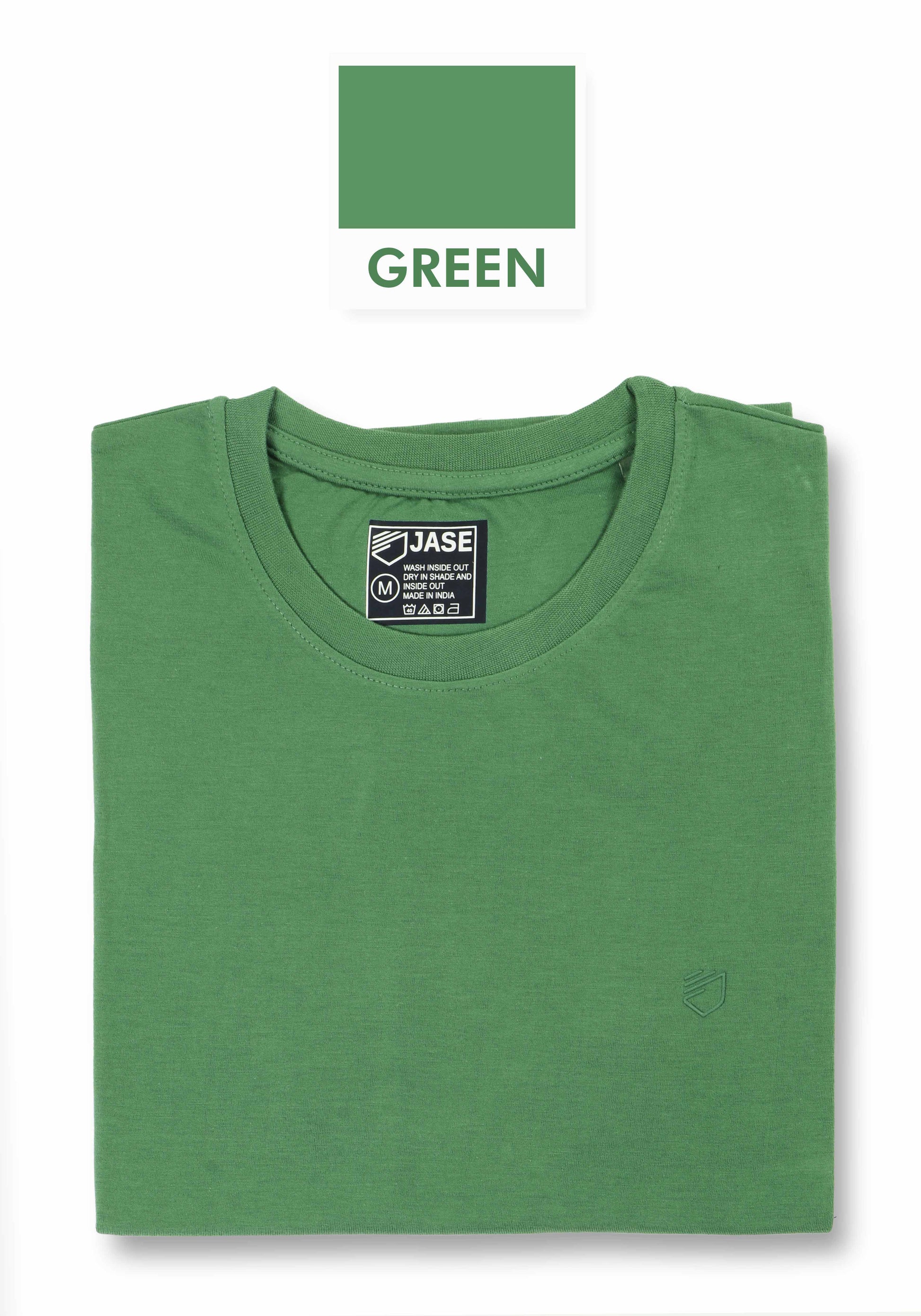 JASE Men's Solid Round Neck Half Sleeve Regular Fit T-Shirt - Green