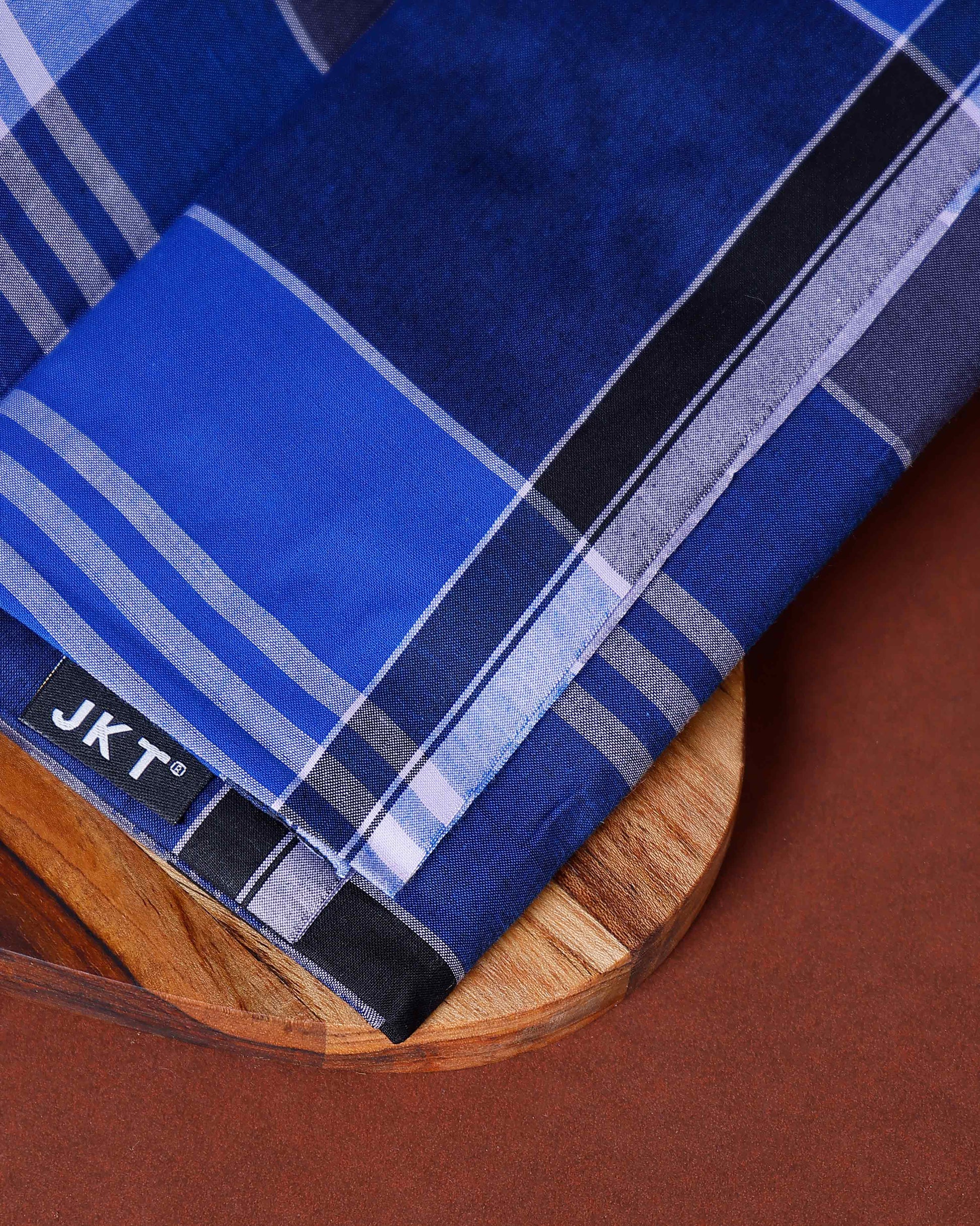 JKT Brand Men's Premium Cotton Strypes Lungi Stitched - Blue