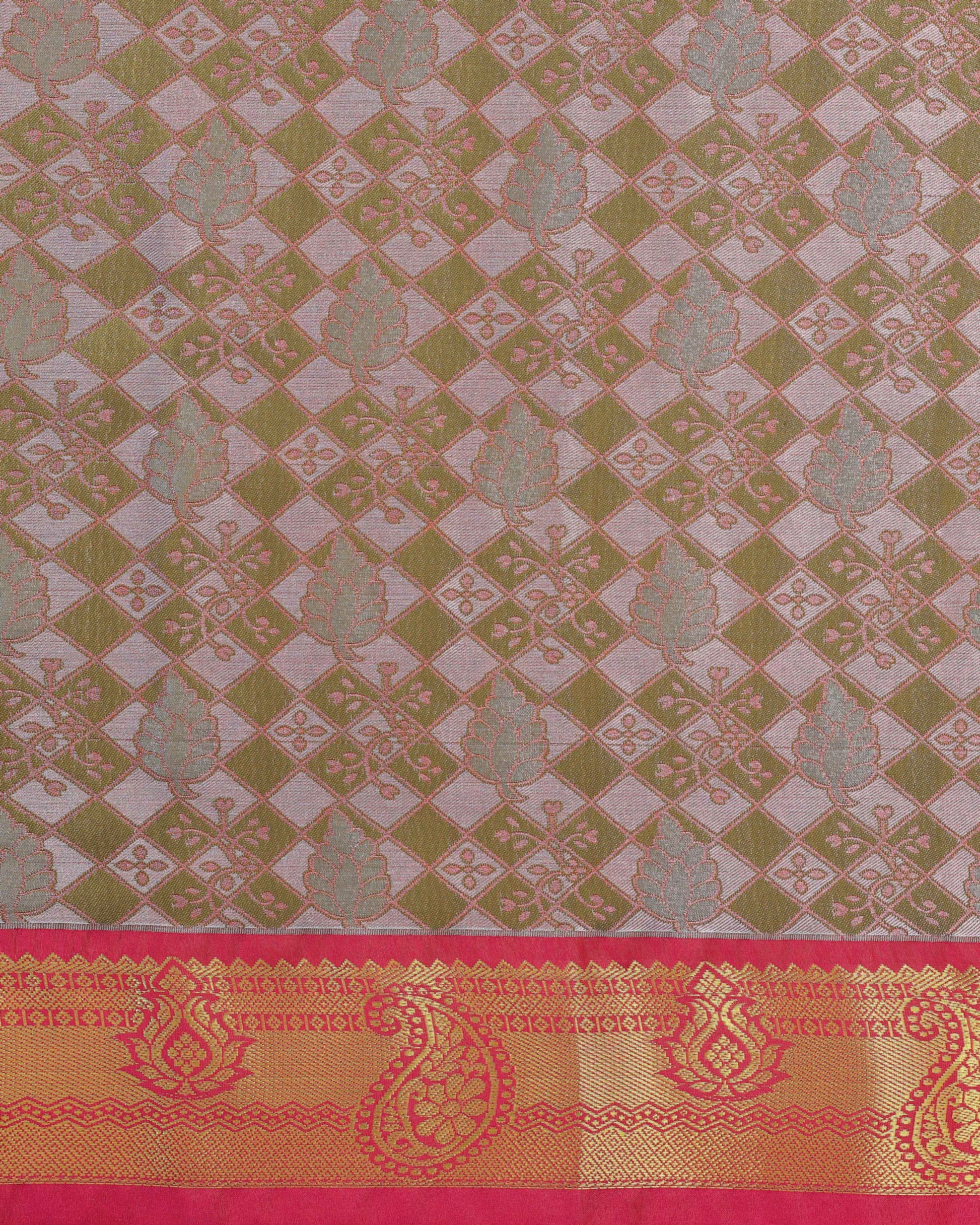 Kanchipuram Pattu Pavadai Material with Zari Border Work - Multi