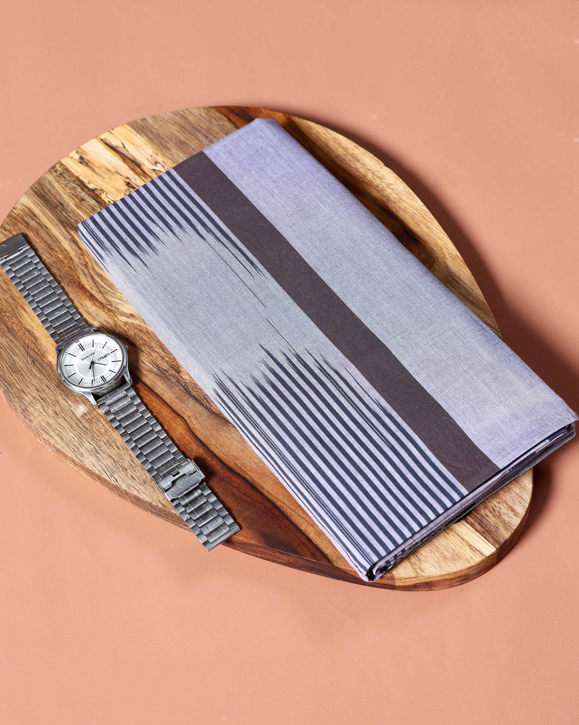 - Experience traditional comfort with this men's Grey Striped cotton lungi perfect for casual wear.