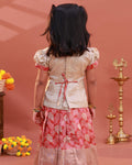 Kids Readymade Pattu Pavadai Set with Embellished Neck Puff Sleeve Blouse and Printed Skirt - Gold