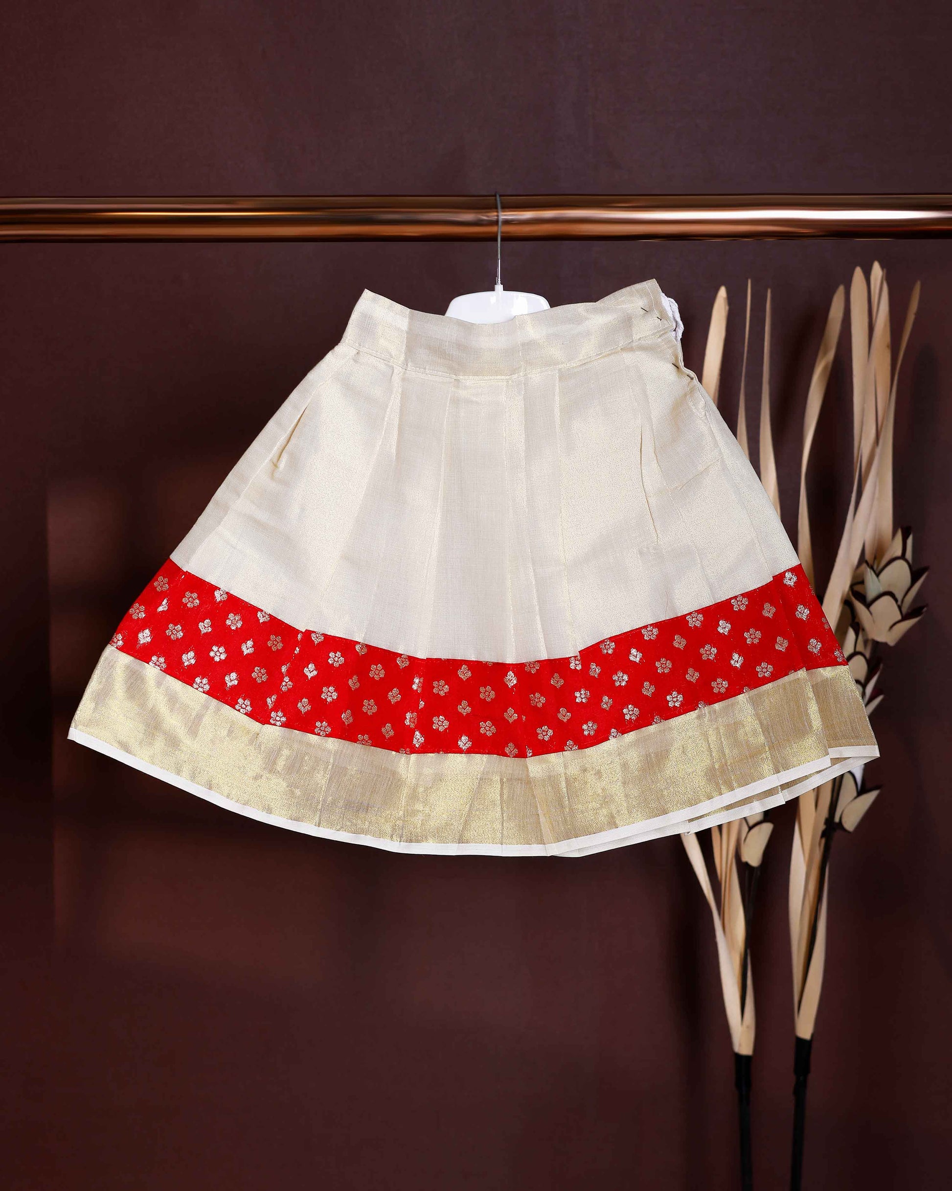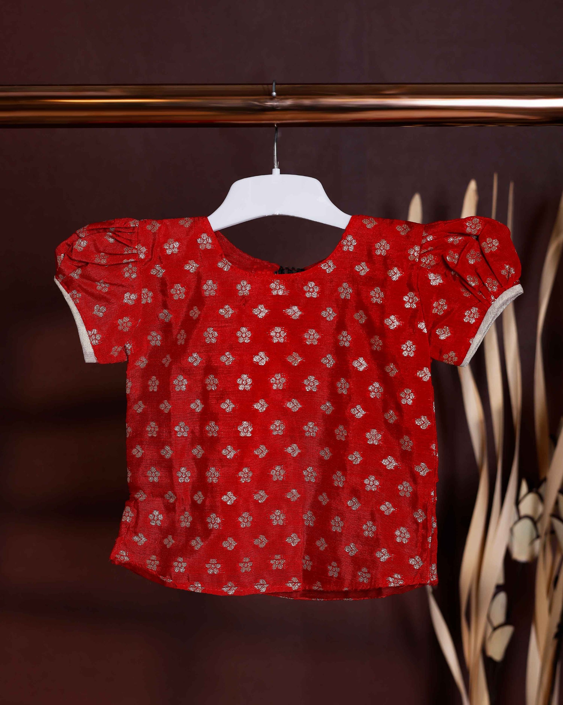 Kids Readymade Pattu Pavadai Set with Traditional Motifs - Red