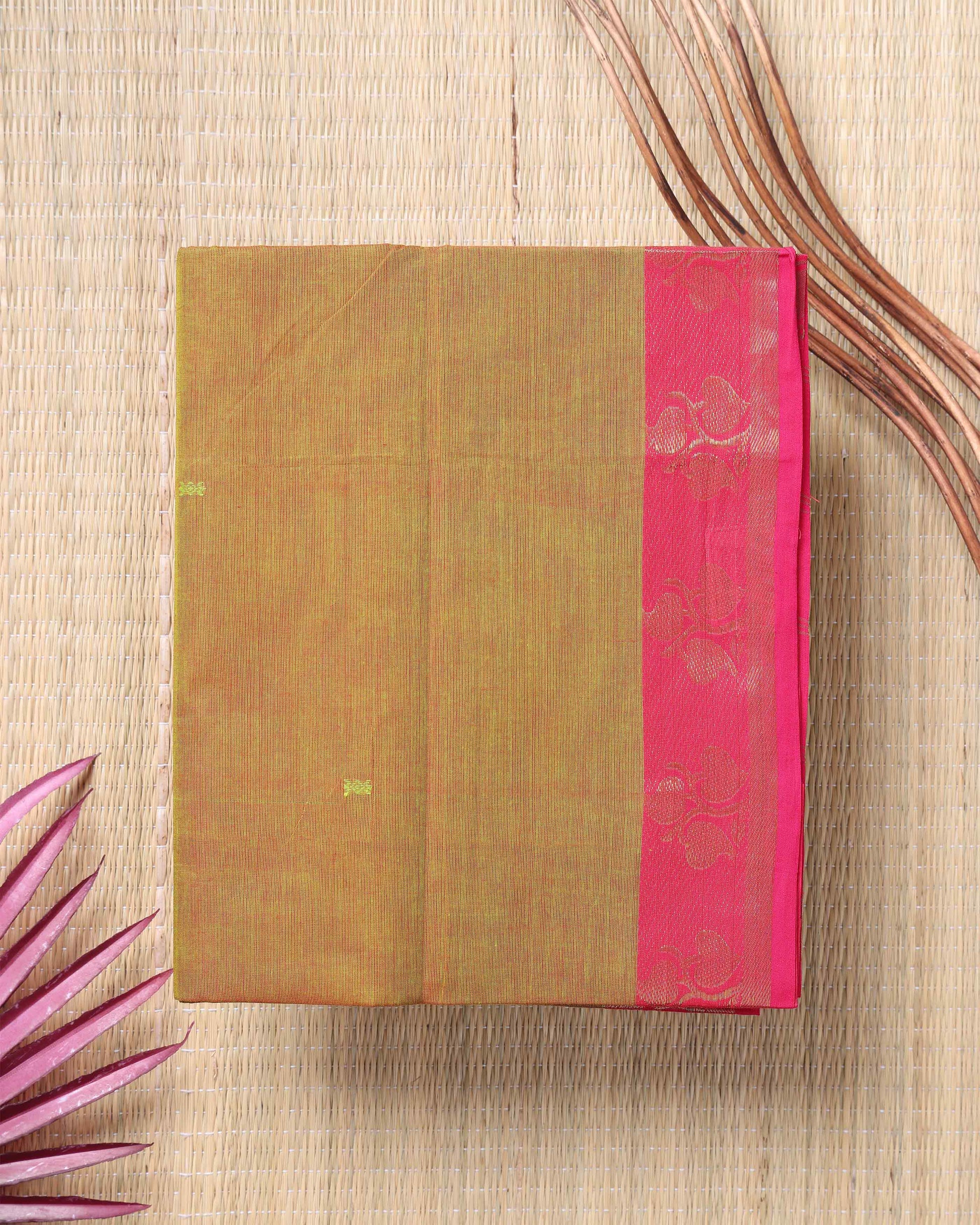 Handloom Cotton Saree with Contrast Border - Green
