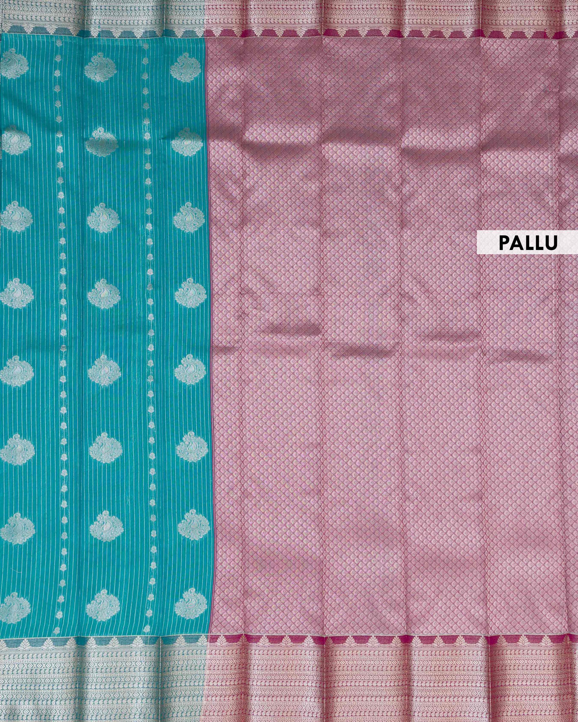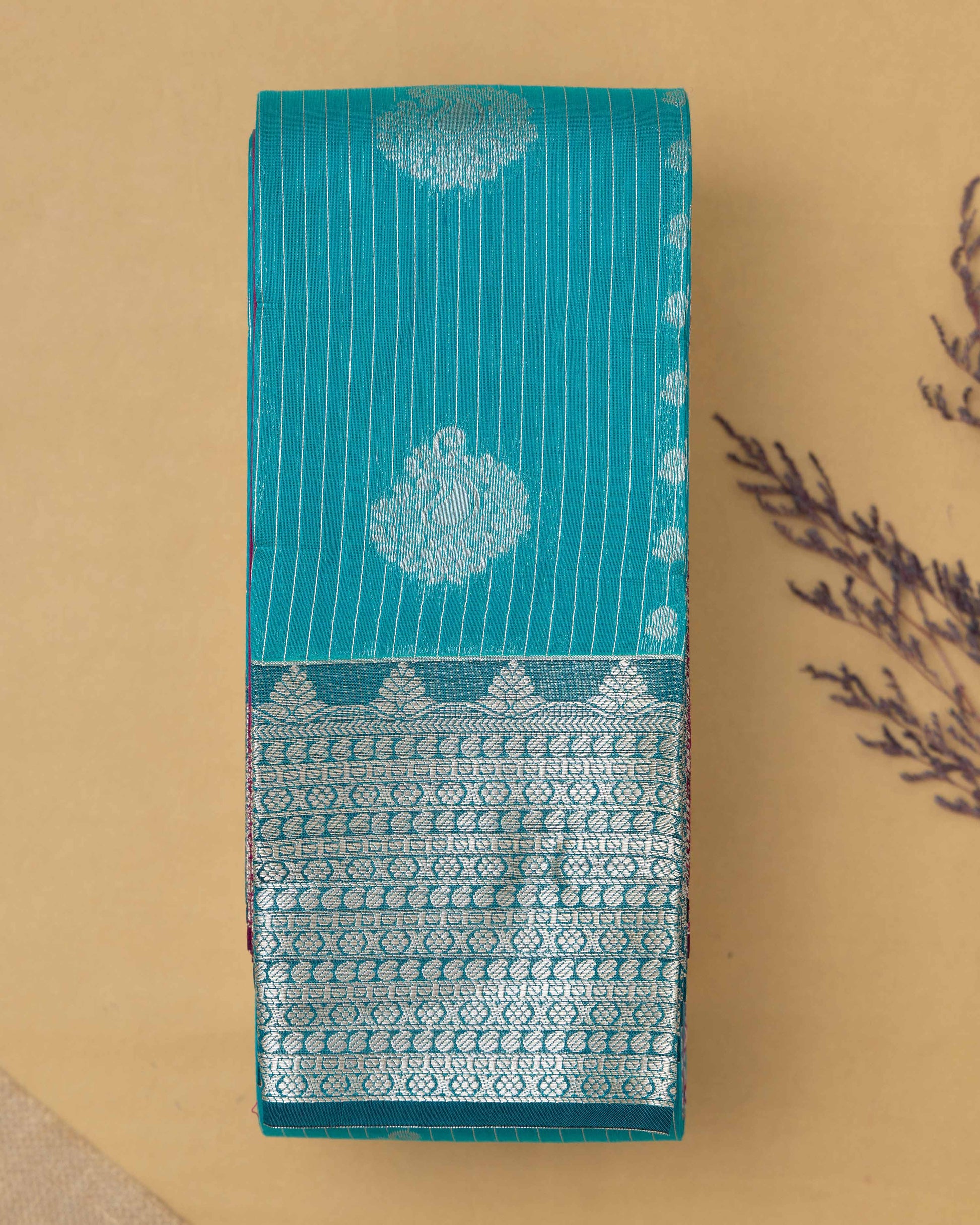 Exquisite Silk Cotton Saree With Striped Design - Blue