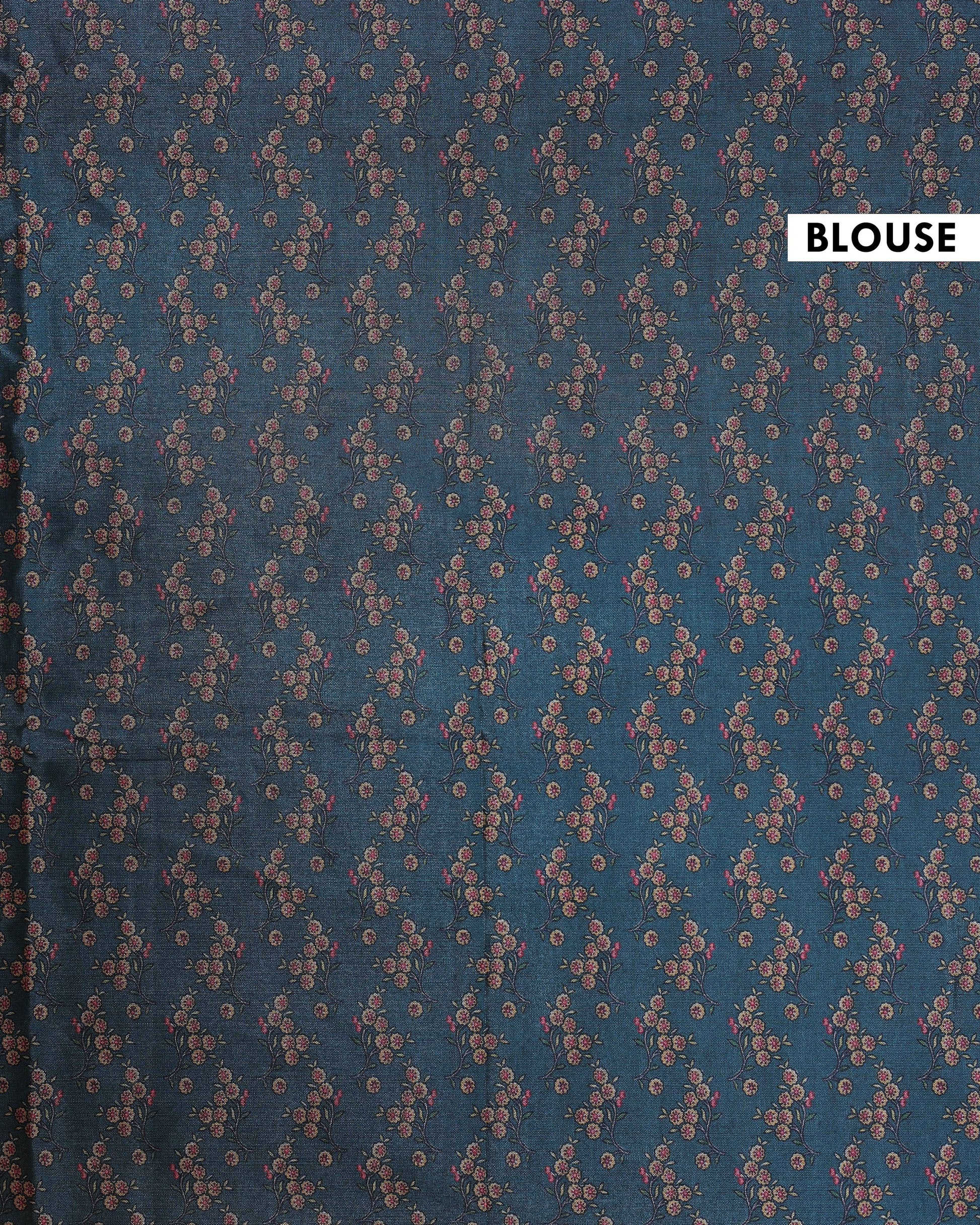 Elevate your wardrobe with this exquisite art silk saree, featuring a stunning all-over floral print and a contrasting border with intricate traditional motifs -
