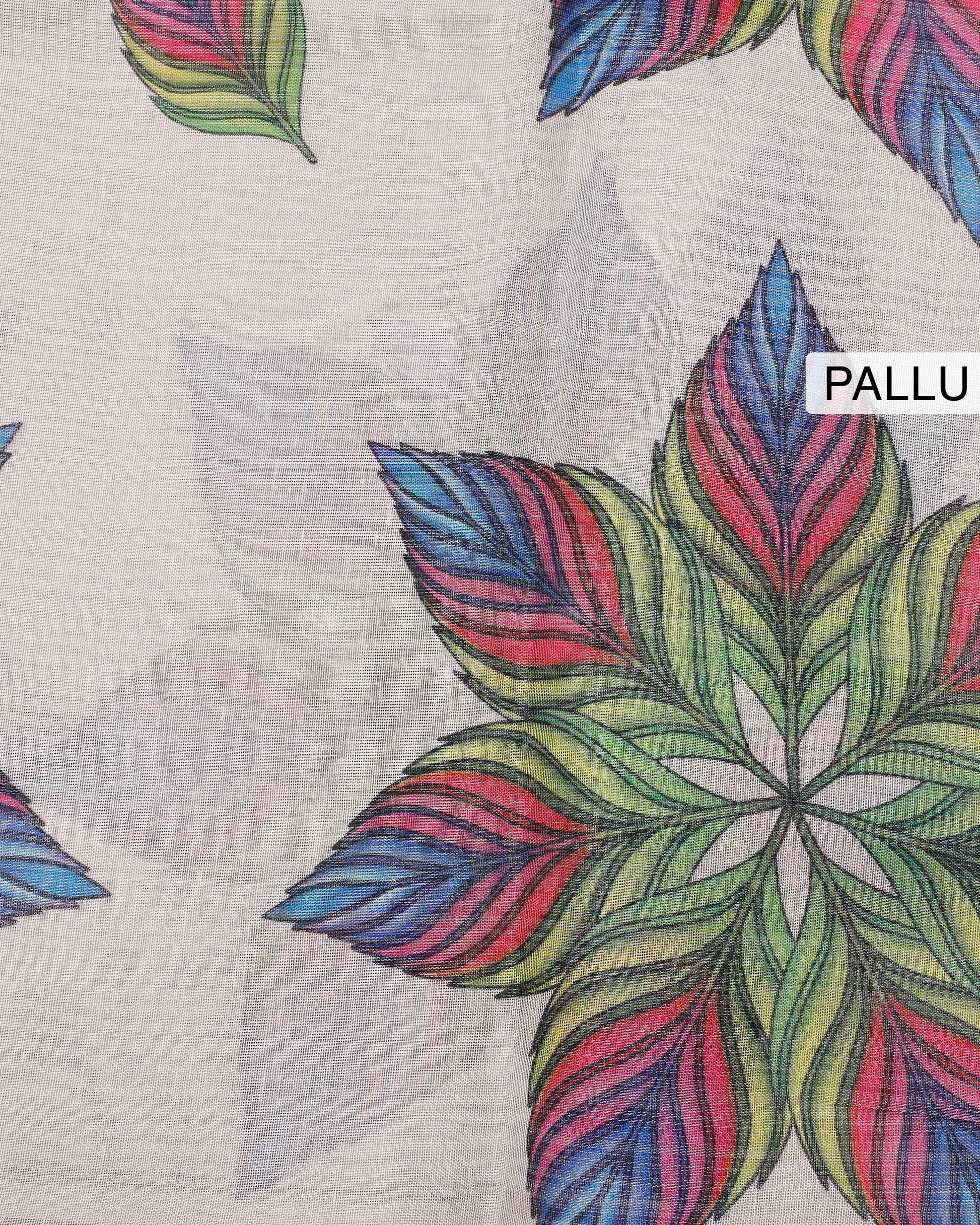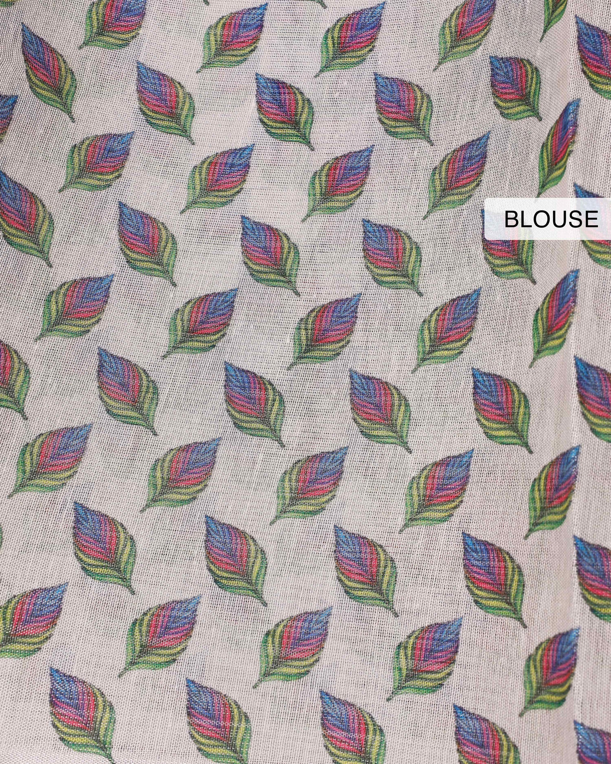 - This lightweight tissue saree a vibrant, hand-painted feather-inspired floral design, perfect for adding a touch of elegance to any occasion