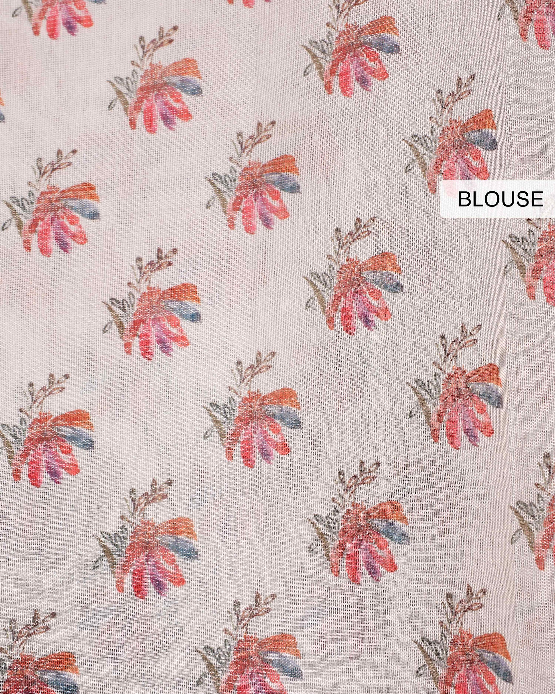 - Adorn yourself in the delicate elegance of this light grey tissue saree, vibrant floral prints that add a touch of modern charm.