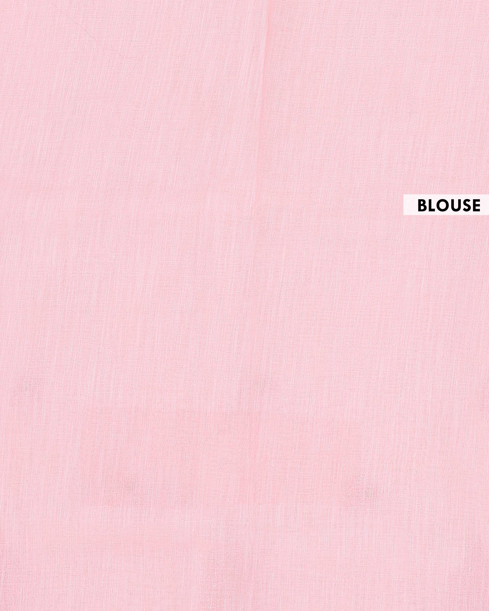 Subtle Weave Linen Cotton Saree With Zari Border - Pink