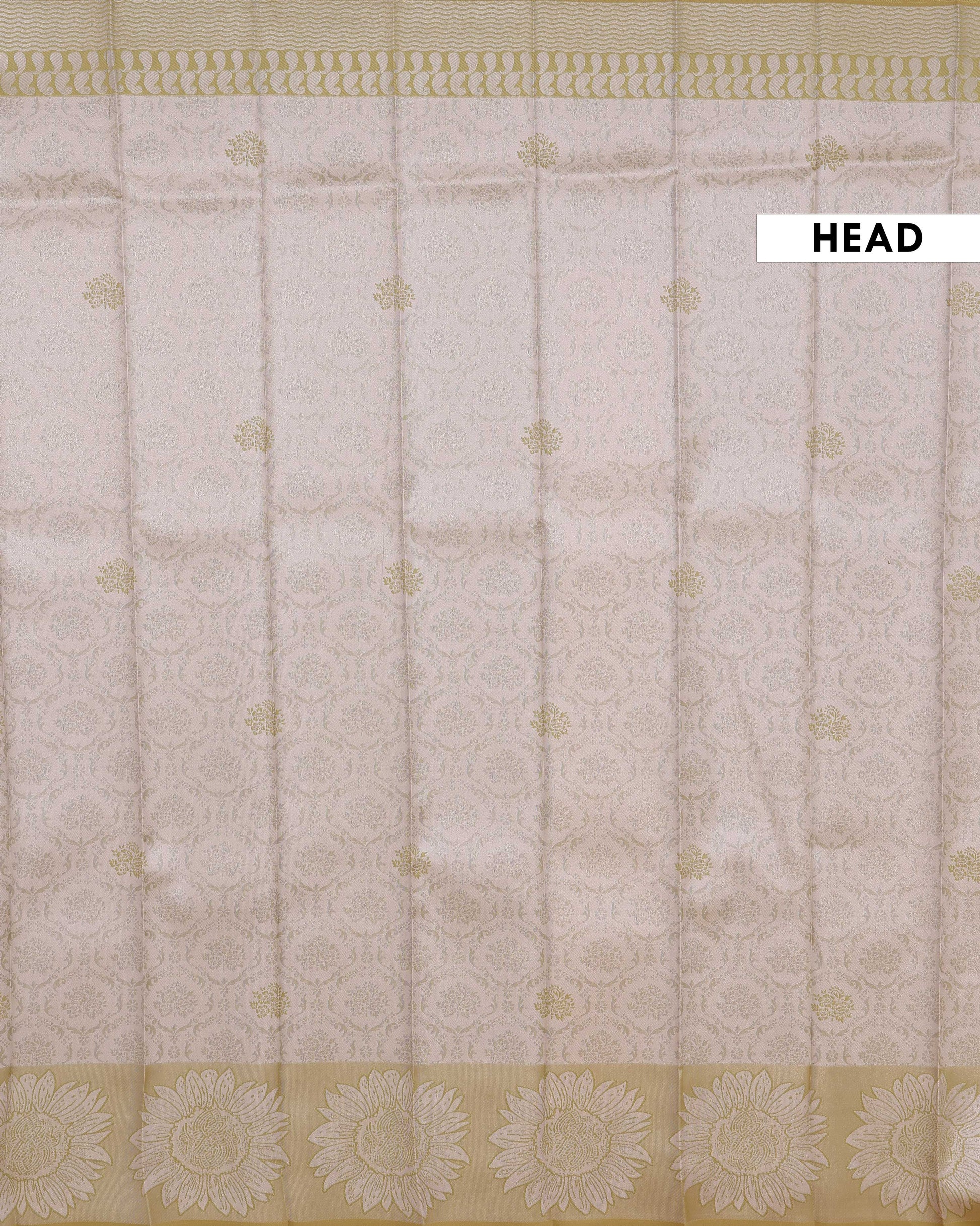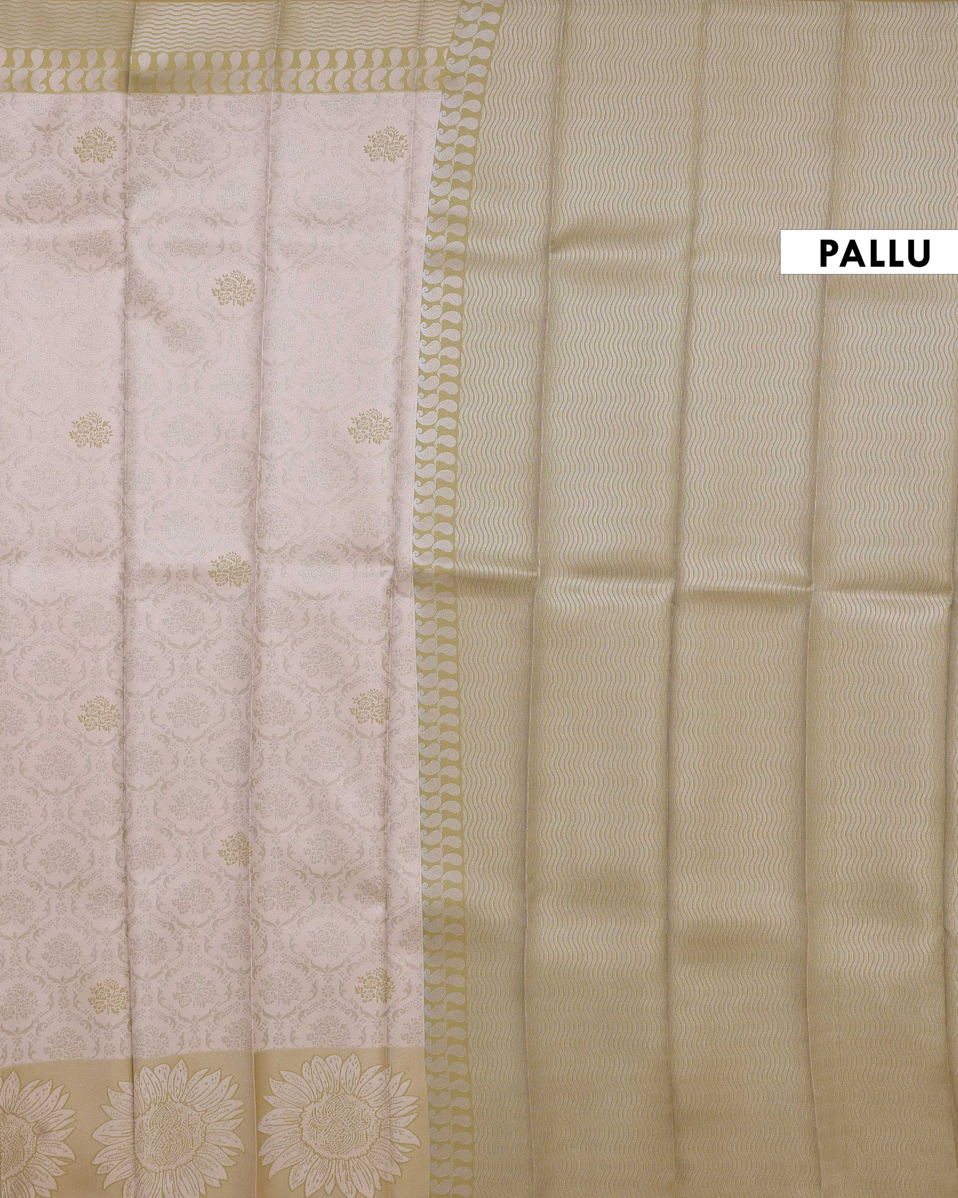 - Classic Elampillai Silk Cotton Saree rich floral jacquard weaving and a bold sunflower motif pallu.